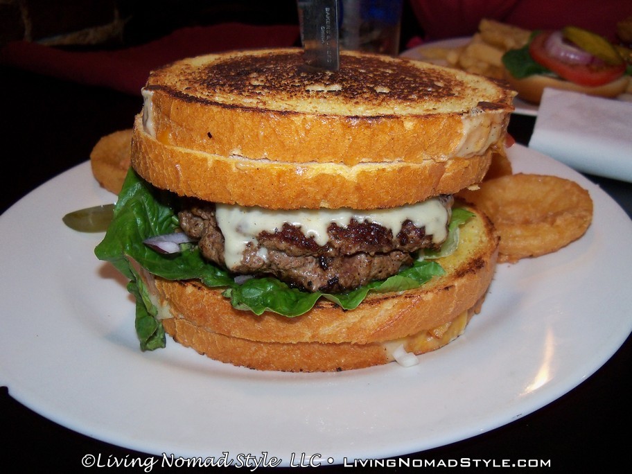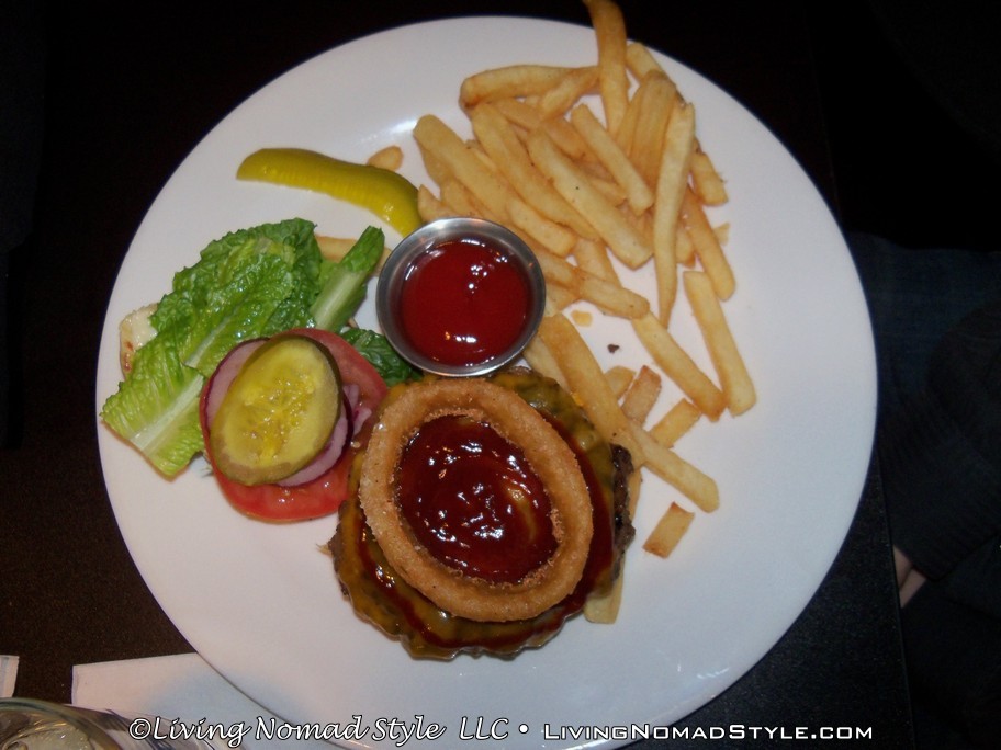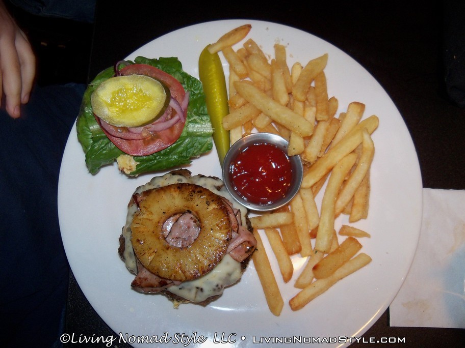 We went to this place for burgers and it did not disappoint. They had a wide array of selections. Some were traditional, Bacon Cheddar Burger, while some other ones were clearly original, The Heart Attack Burger. Trevor ordered the Hawaiian Burger. He loves Hawaiian Pizza and this was similar in composition: burger, ham, pineapple and swiss cheese. Mama Nomad and Noah ordered the Rodeo Burger: burger, cheddar cheese, onion ring and bbq sauce.
