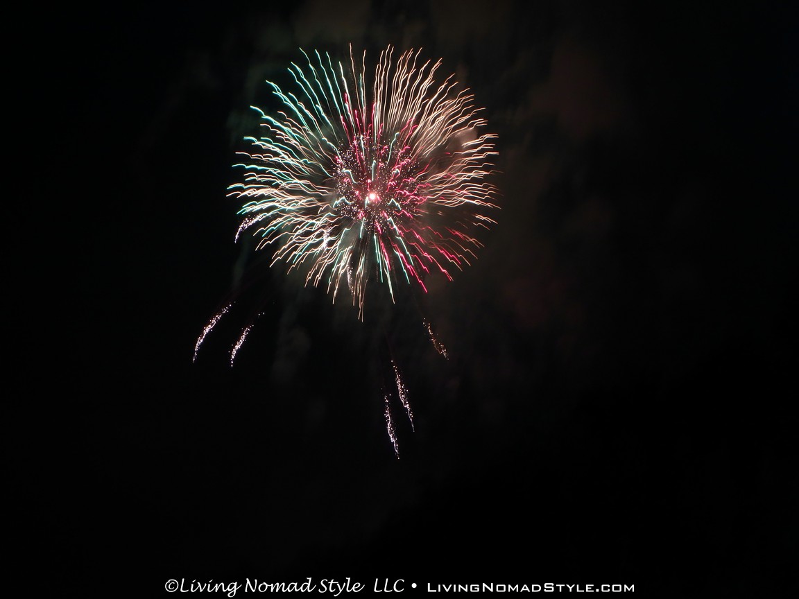 We finally got a sampling of dinner foods and sweets and decided to return to our temporary location. We all sat down and settled in to watch the fireworks. They began shortly after taking seat and they were great! The fireworks lasted, what seemed to be, 15 minutes or more. This was an eternity in a fireworks timeframe. When it got to the end, due to be surrounded by mountains and no wind, there was an overabundance of smoke. The smoke was so bad that it was covering up the actual fireworks.