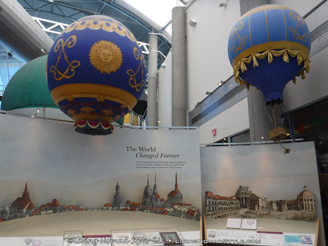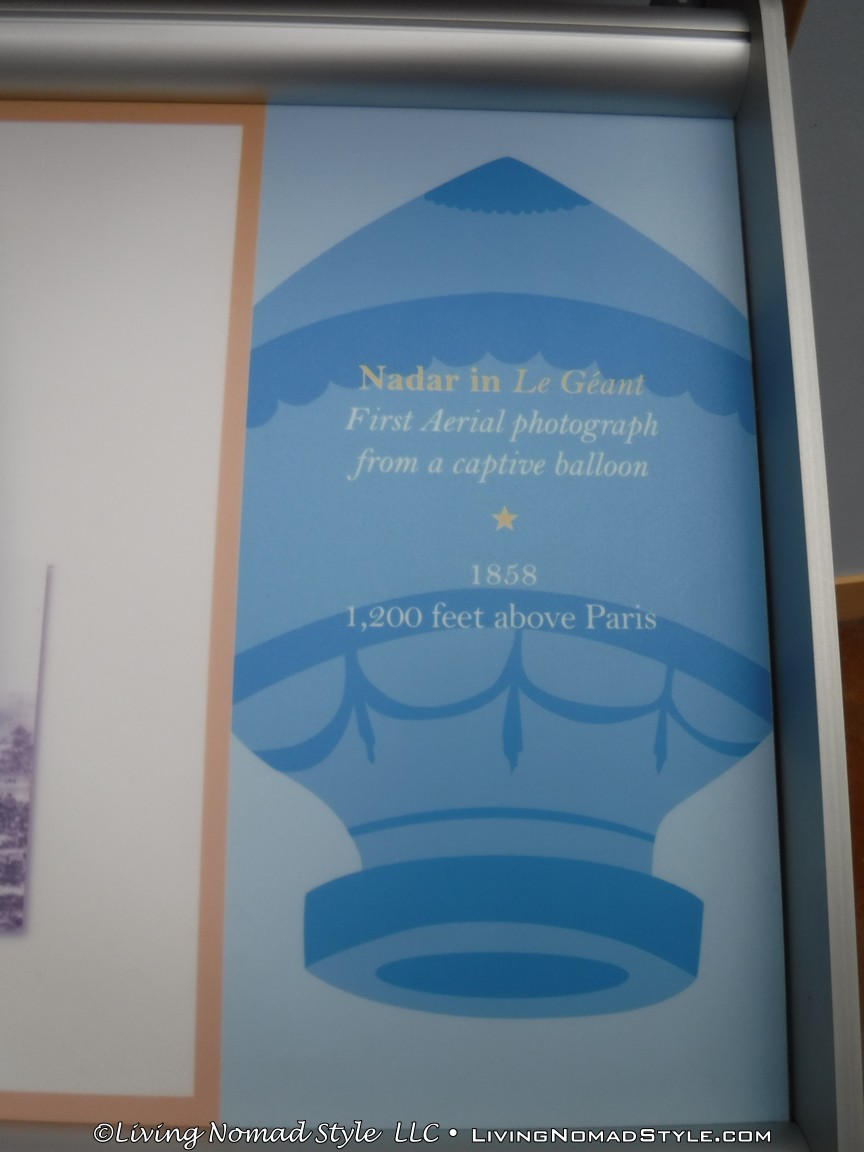 From there, now that it was known that this can actually work, more and more people began to experiment with the hot air balloons. They used them for enjoying the views, travel, people would do tricks from them for entertainment and more. One man, Nadar Gaspar-Felix Tournachon, mounted a camera to the basket of the balloon and took the first aerial photograph 1200 feet over Paris, France in 1858. Men and women alike jumped into the ballooning world. And the museum goes into great detail telling you about each of them that were important in the history of the industry.
