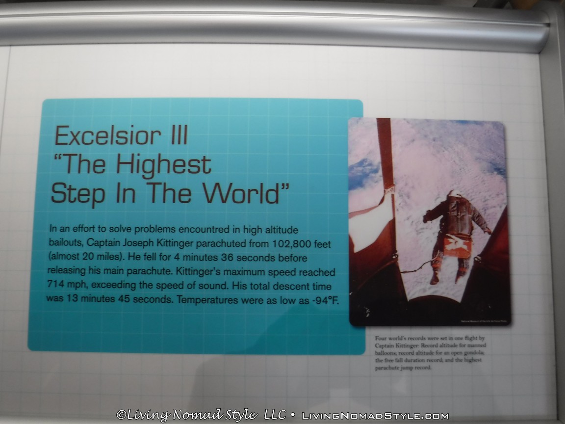 I never knew how significant balloons were to our aeronautic and aerospace futures. Come to find out, they were absolutely integral. The museum actually has a short film that talks about the importance of balloons as it pertains to space flight. It is worth watching. In addition, there are more displays and stories about people who flew balloons through the arctic, across continents and more.