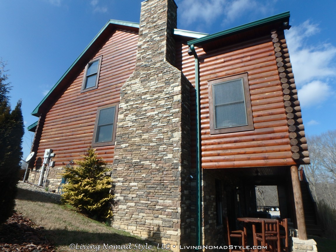 Mama Nomad found us a cabin that was 20 to 30 minutes from Mammoth Cave, in Glasgow Kentucky. First, let me tell you that the word “cabin” does not correctly describe this place. It is built in a cabin style. But, this is not your little cabin in the woods that you think of from TV Shows. This is a grand Kentucky Cabin.