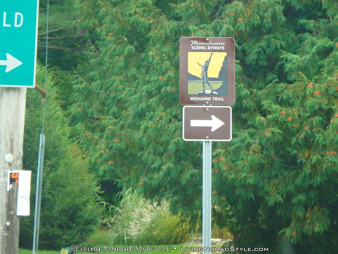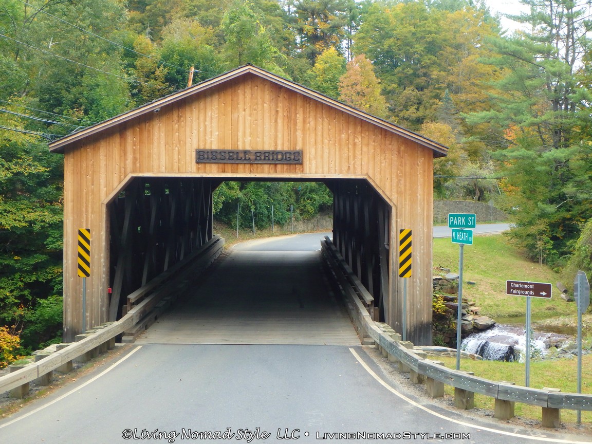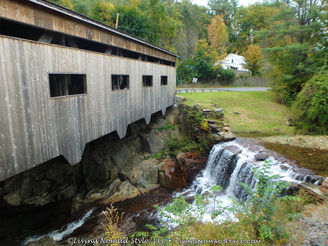 We woke up early and headed towards Vermont. From Connecticut, we took the interstate through Massachusetts until we got to the Mohawk Trail in Greenfield. Mama Nomad read that this was a good road to see the leaves turn as well. We saw some beautiful scenery along this route, but it was not the leave turning views we were seeking. I will say, however, we did see some great views in Shelburne Falls, Massachusetts. And, along the way, we encountered a beautiful covered bridge.