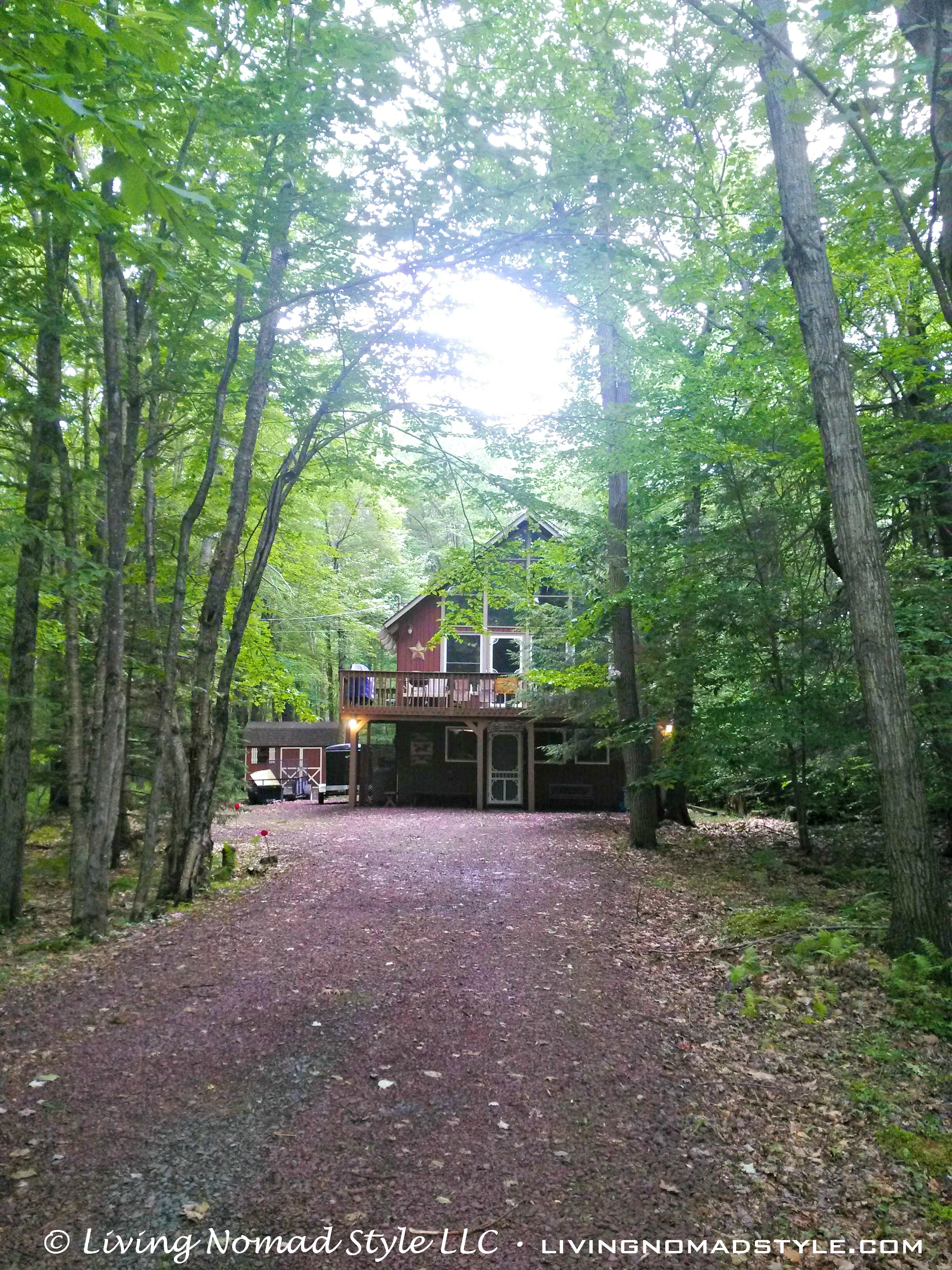 After we departed our West Virginia house, we headed north to the land of William Penn. Mama Nomad found us a place nestled in the forest up in the Pocono Mountains of Pennsylvania. The place is called Leonards Mountain Cabin after its owner, Mr. Frank Leonard. It is hard to describe the feeling being here. In West Virginia, you knew you were rural. We were 2 miles from a paved road and a dozen or more miles to a store of any kind. However, at Leonards Mountain Cabin, our driveway was connected to a paved road. We were in a subdivision with lakes, barbecues, tennis courts and more. A grocery store was 12 miles one way and another was 7 miles the other. There were thousands of people within a few square miles of us. But, when you are actually at the cabin, it is almost like no one is around.