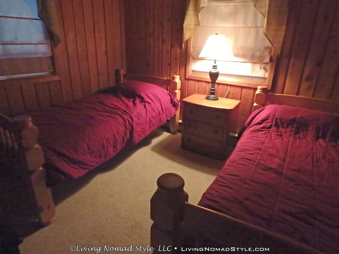 Venture up the stairs to the second level and you will come across three bedrooms, another full bathroom, and an open floor plan that flows from the kitchen into a large dining area and ending in a living room with a propane fireplace. It also has two sliding glass doors that lead out onto the wrap around deck. We spent plenty of time out on this deck barbecuing, drinking coffee, reading and Noah even shot many videos for his YouTube Channel.