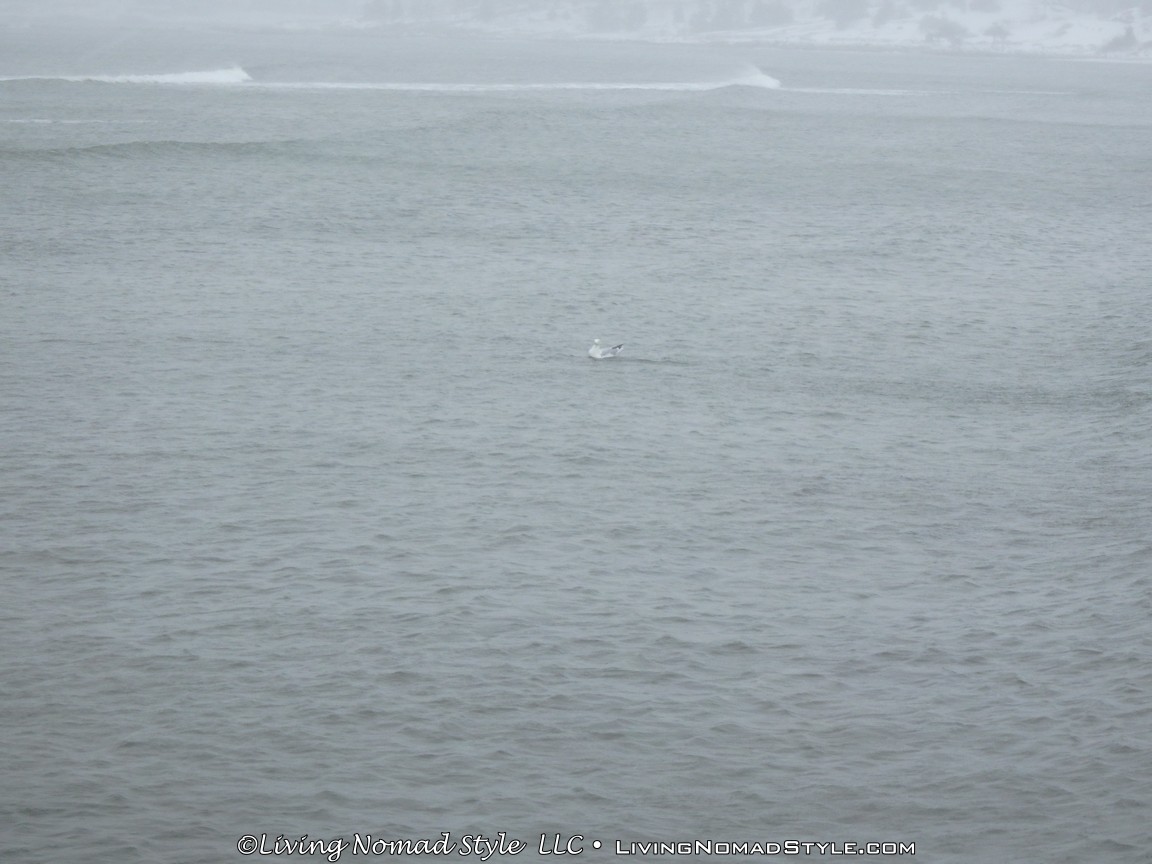 We headed down to the beach. One thing we really, really did not expect to see were seagulls! Really?!?! There were seagulls in the water floating as well as some on the piers. I thought they flew south for the winter. I guess these guys like the cold.