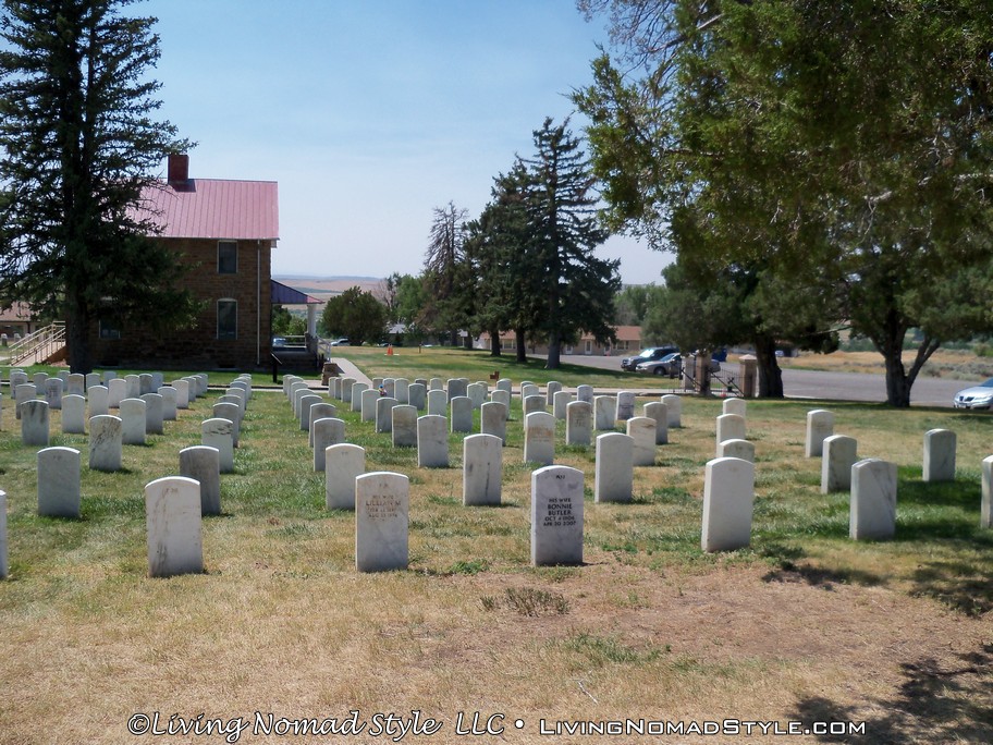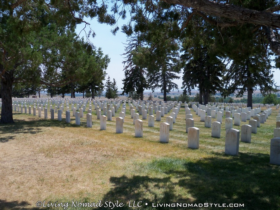 When you arrive and drive through the gates, after paying admission, you will come to an area where you will see gravestones, a few bathrooms, parking lot and a few buildings. The gravestones are not from the Battle of Little Bighorn. Since this is Federal Land, soldiers from many wars throughout the history of the United States are buried here.
