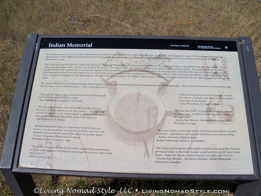 This one memorial gave me more information, in one place, than any other story I had heard before. Do not pass this memorial by. For instance, did you know that the Crow were helping the US Calvary because they were tired of being attacked by the Lakota, Cheyenne and Arapaho? Did you know that General Custer sat and smoked a peace pipe with a medicine man of the Cheyenne and said, “…I will never kill another Cheyenne.” To which Stone Forehead, the medicine man, said, “If you break your promise, you and your soldiers will go to dust like this. If you are acting treacherously toward us, sometime you and your whole command will be killed.” Sounds like the prophecy came true.