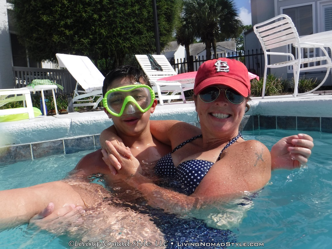 We adjourned from the pool after an hour or so and got ready for the birthday party. Tons of Audrey’s friends showed up and it was an entertaining bunch to watch. The Nomad Sons had no problems joining in with the other teens in the festivities. The party was fun and socializing was entertaining.