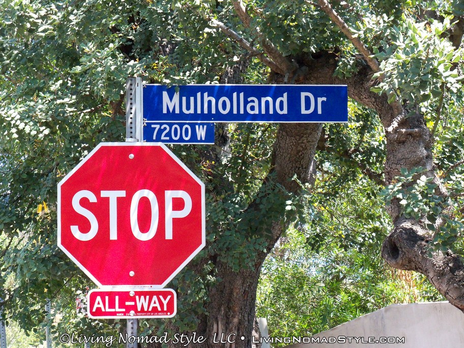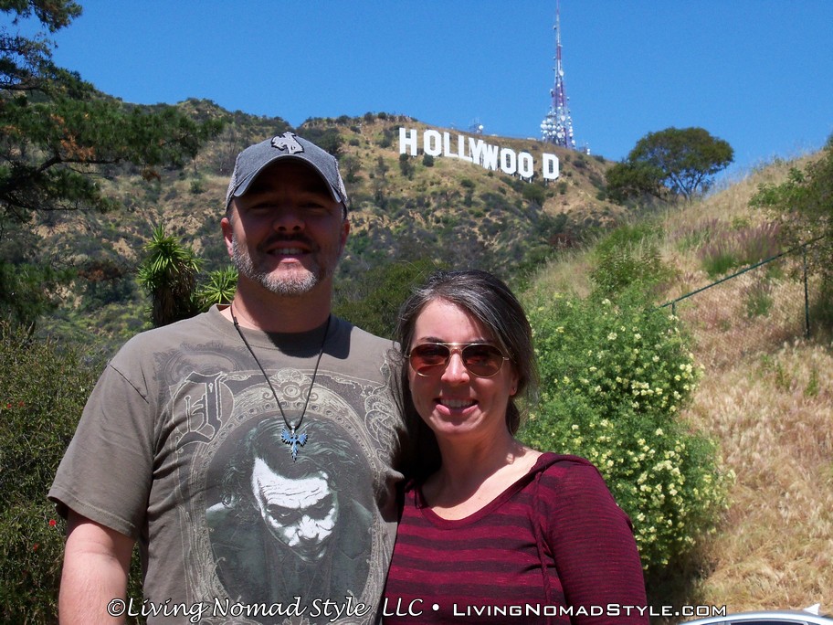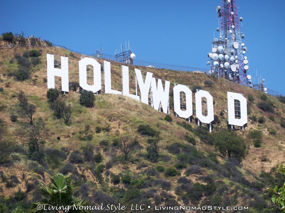 I jumped back in Ebony and we were on our way. Our next stop was more of a journey than a specific stop. We wanted to get some good shots of the Hollywood Sign. No one wanted to hike up behind it to get close to it because we wanted to see it from the front. So, through research that Mama Nomad and I conducted, we found a few different places that were supposed to give you good views of the sign. This ranged from a spot on Mullholland Dr to a neighborhood that was at the bottom of the mountain below the sign, by the Hollywood Reservoir. The latter gave us the best, uncrowded views. We even took a walk around the reservoir while we were there.