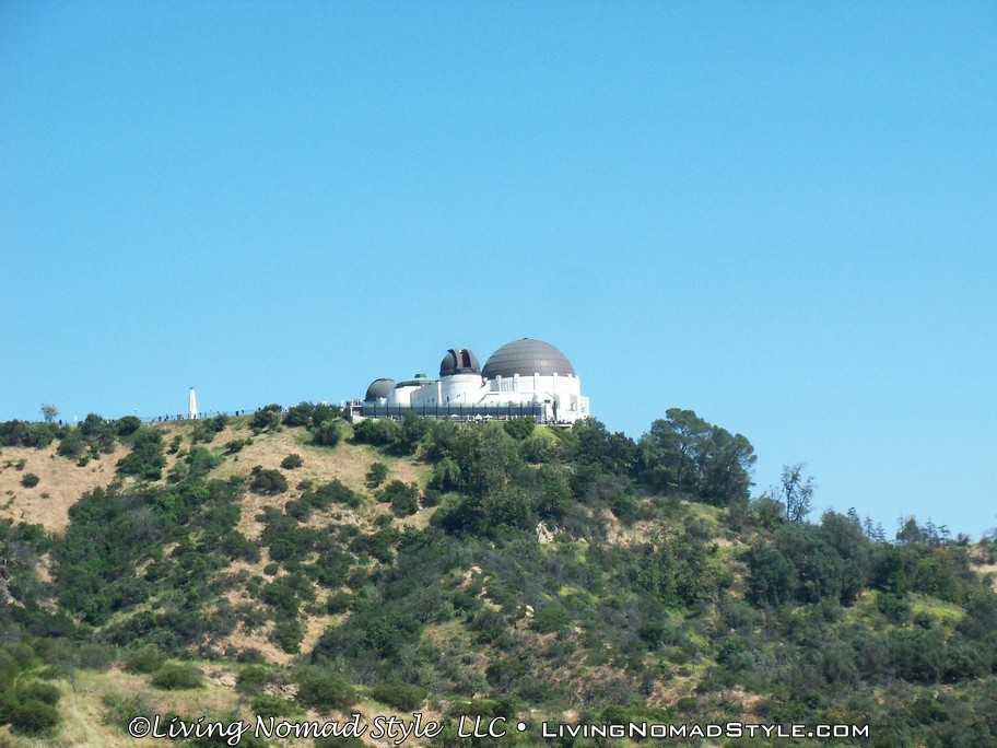 After checking the Hollywood Sign off of our list, the next stop was Griffith Observatory, which is above Griffith Park. I thought it would be interesting for the rest of the Nomads to see a real observatory. And, the boys like the movie Yes Man, which has scenes at the observatory. On the way there we passed the Capitol Records building and the Scientology Celebrity Centre; both well-known buildings in LA.