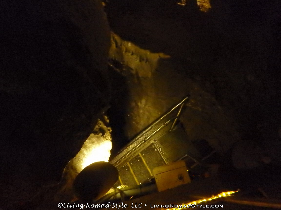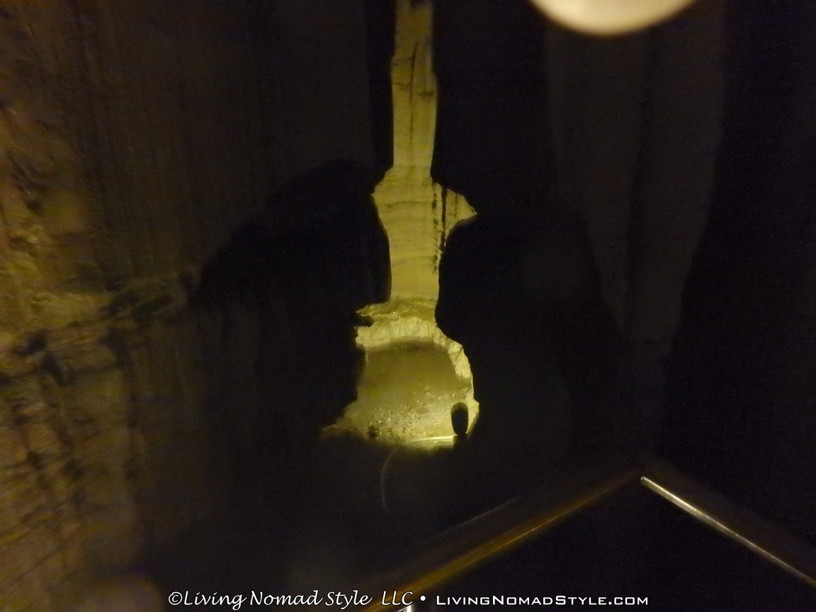 We descended over 300 stairs. They twisted and turned this way and that. We went over deep chasms that seemed to plummet forever and entered other rooms with high domes. At one point we entered a long tunnel called the New York Subway and it exited at, none other than, Grand Central Station. This was a big room with lots of benches. We stopped here for a bit and the Park Ranger told us more stories. Spoiler alert! They will turn out the lights and it will be one of the darkest rooms you have ever been in. You will NOT be able to see your hand right in front of your nose.