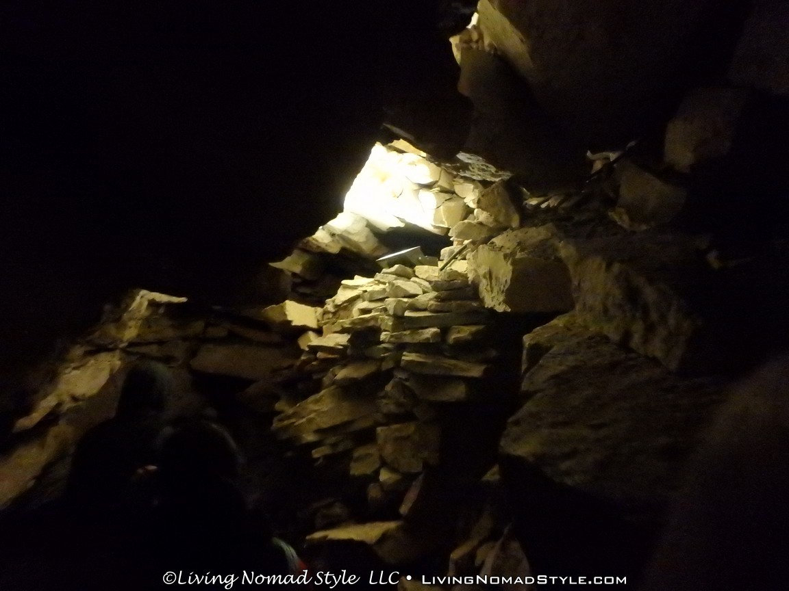 We took a bus about 4 miles to the entrance to our tour. The Park Ranger gave us a few more helpful hints and instructions, like no flash photography allowed at all…no exceptions. My camera has a light sensor that illuminates before every picture. Could not turn it off. So, you will see my finger (sometimes) trying to cover up the light sensor so I could still take pictures. And I took a lot of them. Be forewarned of the heavy picture count of this post.
