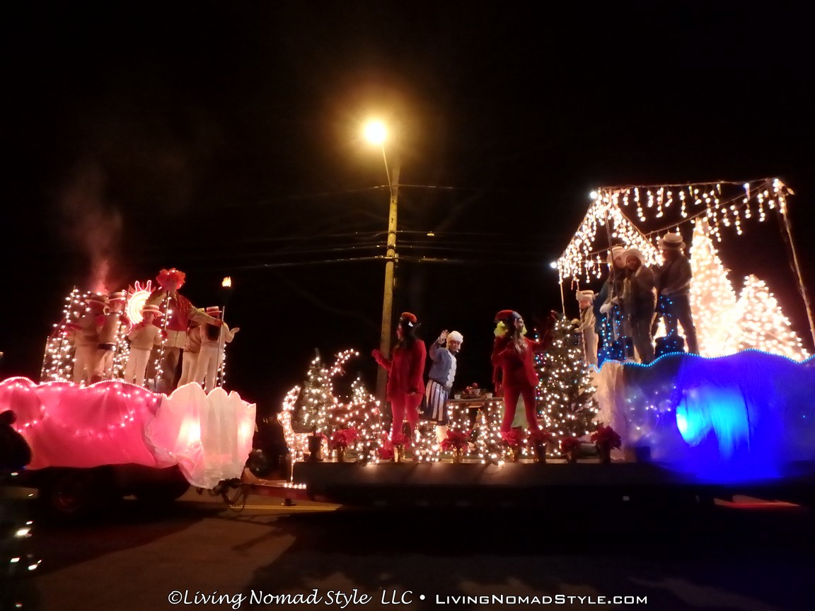 Around 6pm the parade started. There were floats of all shapes, sizes, colors and themes. I will let the pictures speak for themselves. There were even some performers that danced down the street and a live band on rocking out on a flatbed truck. The parade ended with jolly old Saint Nick and his wife riding down the road.
