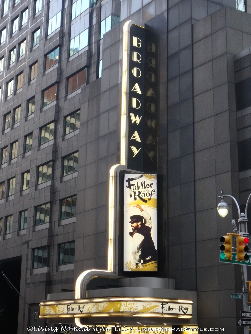 We turned Southward, next stop…Broadway. We walked down Central Park West until we hit Columbus Circle, where Trump International Hotel and Tower and CNN are. We walked around the circle and headed on down the Famous Broadway Ave where we saw the buildings for The Late Show, Broadway Theater, School of Rock and many more plays.