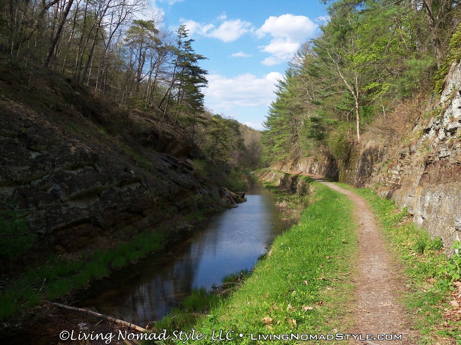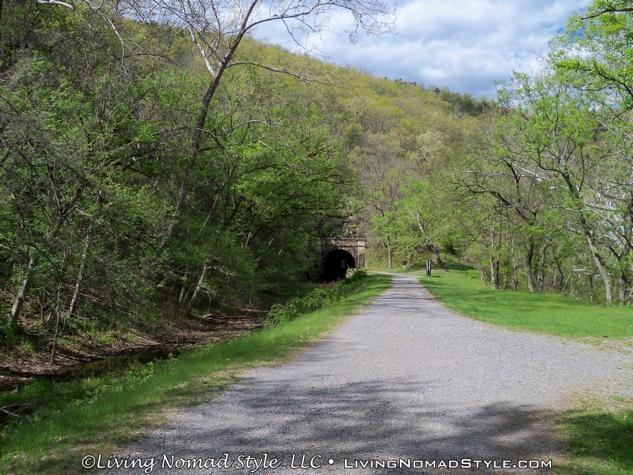 The Paw Paw Tunnel is a 3,118-foot long canal tunnel on the C&O Canal in Allegheny County, Maryland. With it being so close to where we are, we had to go explore it. The easiest way to access it is to go to the free parking area. If you go to Paw Paw, West Virginia and head north on Highway 9, you will cross the Potomac River and within about 1/4 of a mile, there is a turn off on the right. This will lead you into a parking lot where you can leave your car and head out on foot.