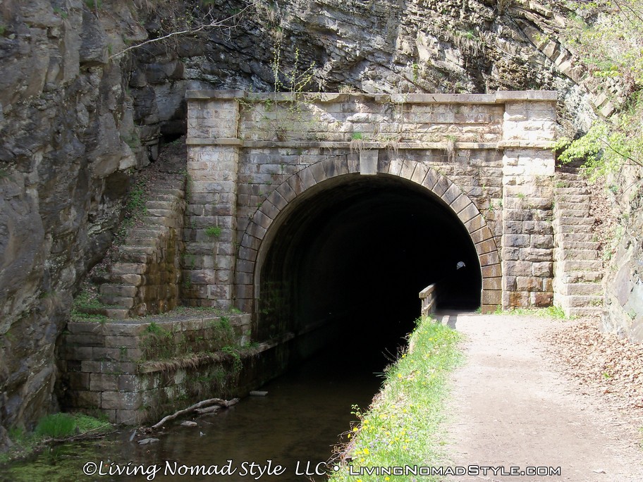 If you plan on going to the Paw Paw tunnel, here are a few words of advice. I would suggest you bring some sort of small flashlight. When you are in the middle of the tunnel, you will not be able to see your feet. There are some uneven spots and ankle deep puddles of water. Which leads me to my next suggestion, bring hiking boots. Do not try this in flip flops. If you wear tennis shoes, you will likely have water soak through and you may end up with blisters before you finish.