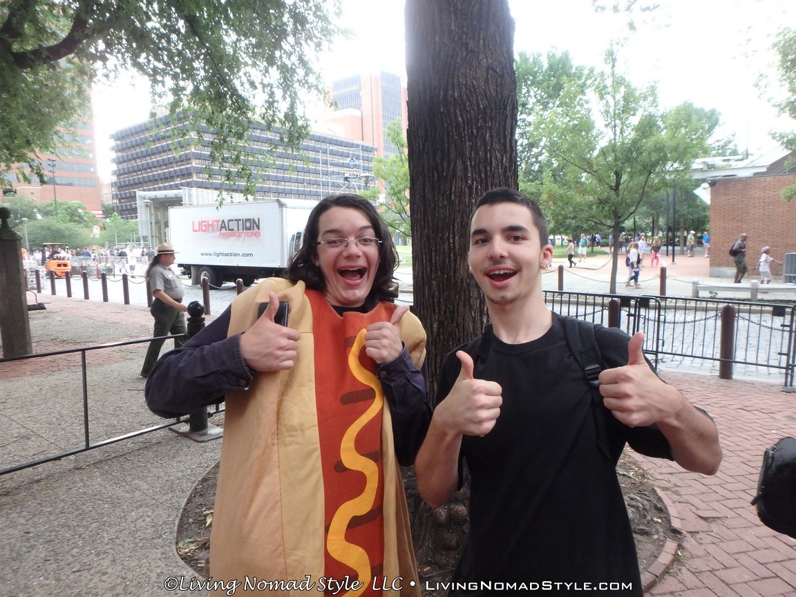 Let me share a few things with you. First, going to Philly on a 4th of July weekend will find you in a more crowded scenario than you would commonly be in. The state that boasts Independence in its motto and which was so instrumental in the declaring of independence of the United States from Britain has a lot of visitors on the 4th of July weekend. We were there on the 2nd and it was crowded. Although, part of it may have been the free food. They were giving away free food and bottled water in downtown Philly. That always draws crowds. The rest was clearly to celebrate our independence in the state where our Declaration of Independence was signed. Oh another tidbit, parking prices are reasonable below the Visitor’s Center. That is where we parked. It is about $14 or $15 for the day.