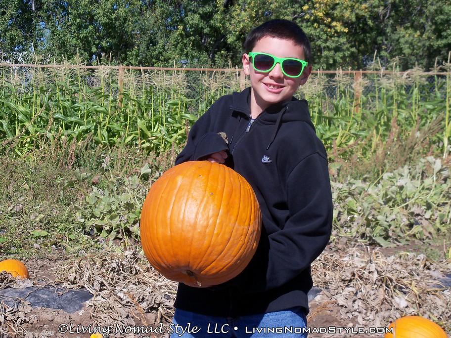 Here we are, almost two weeks into the autumn season, and let me tell you, the Nomads have been celebrating up a storm. We’ve already been able to take in the beautiful changing of the leaves in our own area and beyond. The pumpkin scented soaps and candles are out, being enjoyed by all. We’ve been eating up chili and soup to fill our bellies. Homemade applesauce has been cooking up in my slow cooker almost every day of the week, filling the house with all kinds of yummilicious smells. AND we’ve even hit up the pumpkin patch to get our pumpkins.