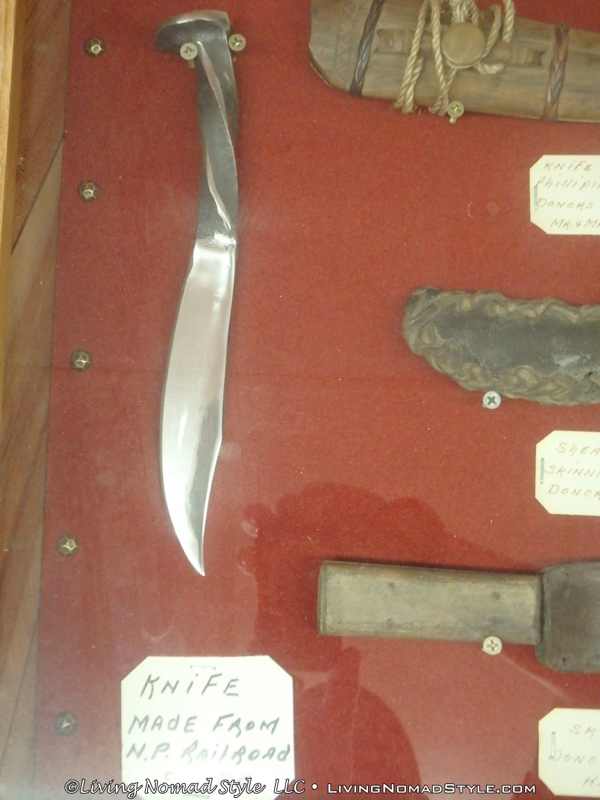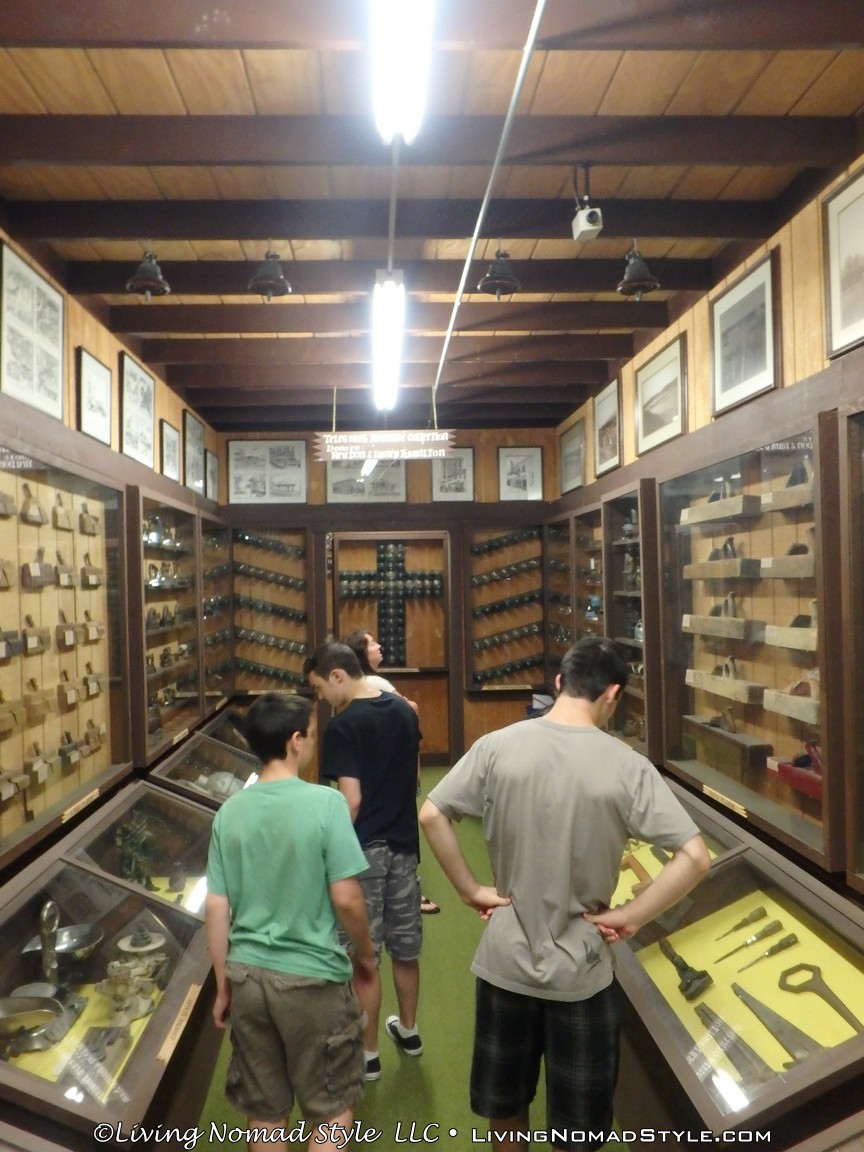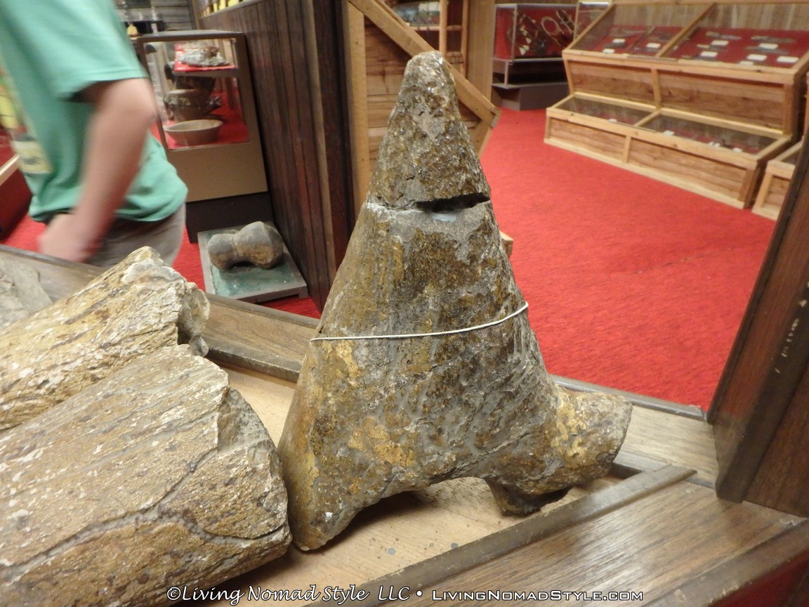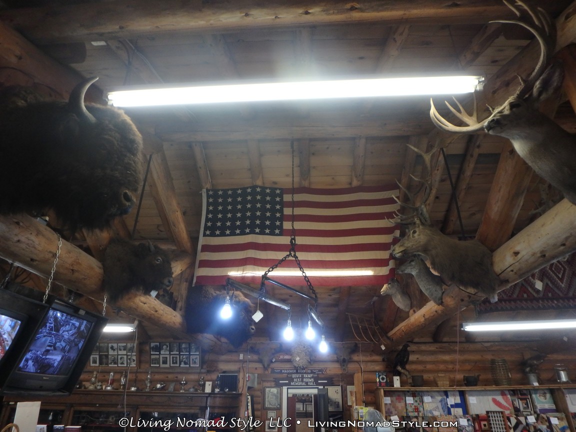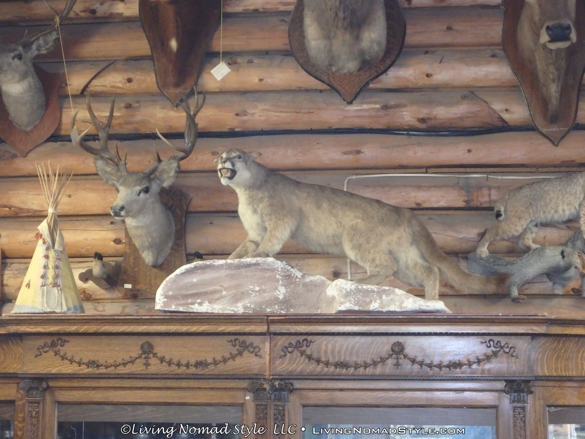 The front room in the main building, where the main entrance is, was split between historical artifacts on the right and a gift shop on the left with all manner of animals adorning the rafters and walls. Just to the right of where you pay, there is a large map (like the one on the wall in grade school geography class). It had a plethora of stick pins all over it. We were told to put a pin on the map that marked where we came from. Well, we travel all the time and we just came from Wisconsin. But, instead we used Mama Nomad’s home state of Missouri. The other side of the board was a map of the world. Let me tell you folks, people from all over the world have graced the doors of this place! Simply amazing.