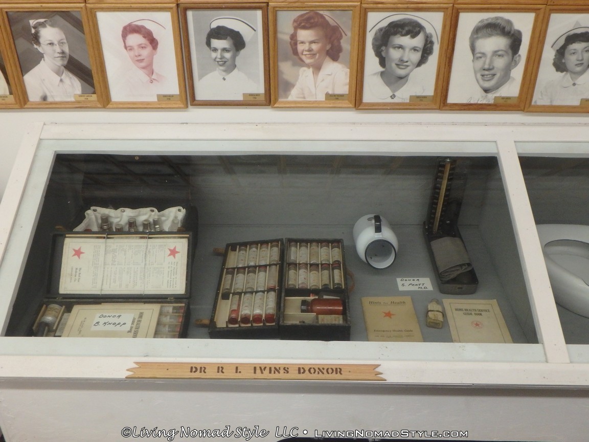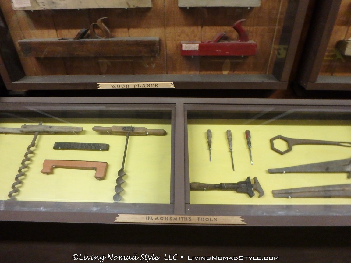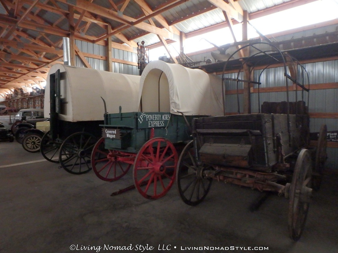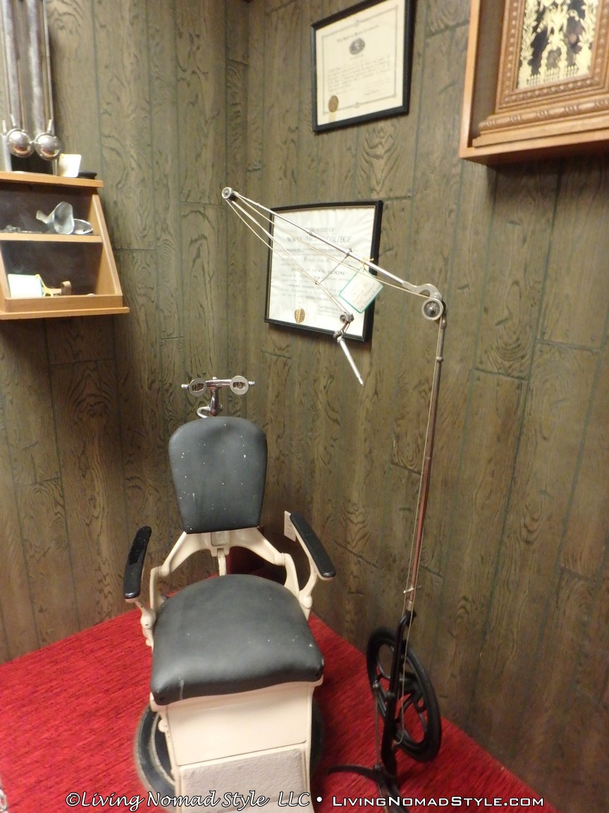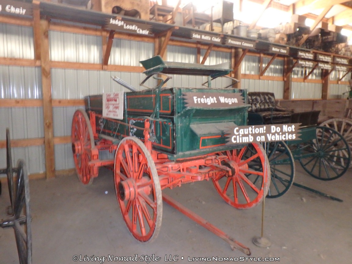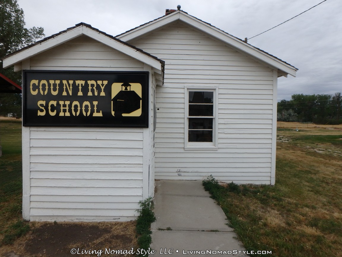 One building was a replica of an old officer’s quarters. One held periodicals from the early 1900s as well as medical devices and pictures of nurses. Next door was an old country school house. And the next building down held wagons of all manner as well as many old period articles like a mobile bar, a chair made out of bull horns, homesteader trunks and a coffee mill.