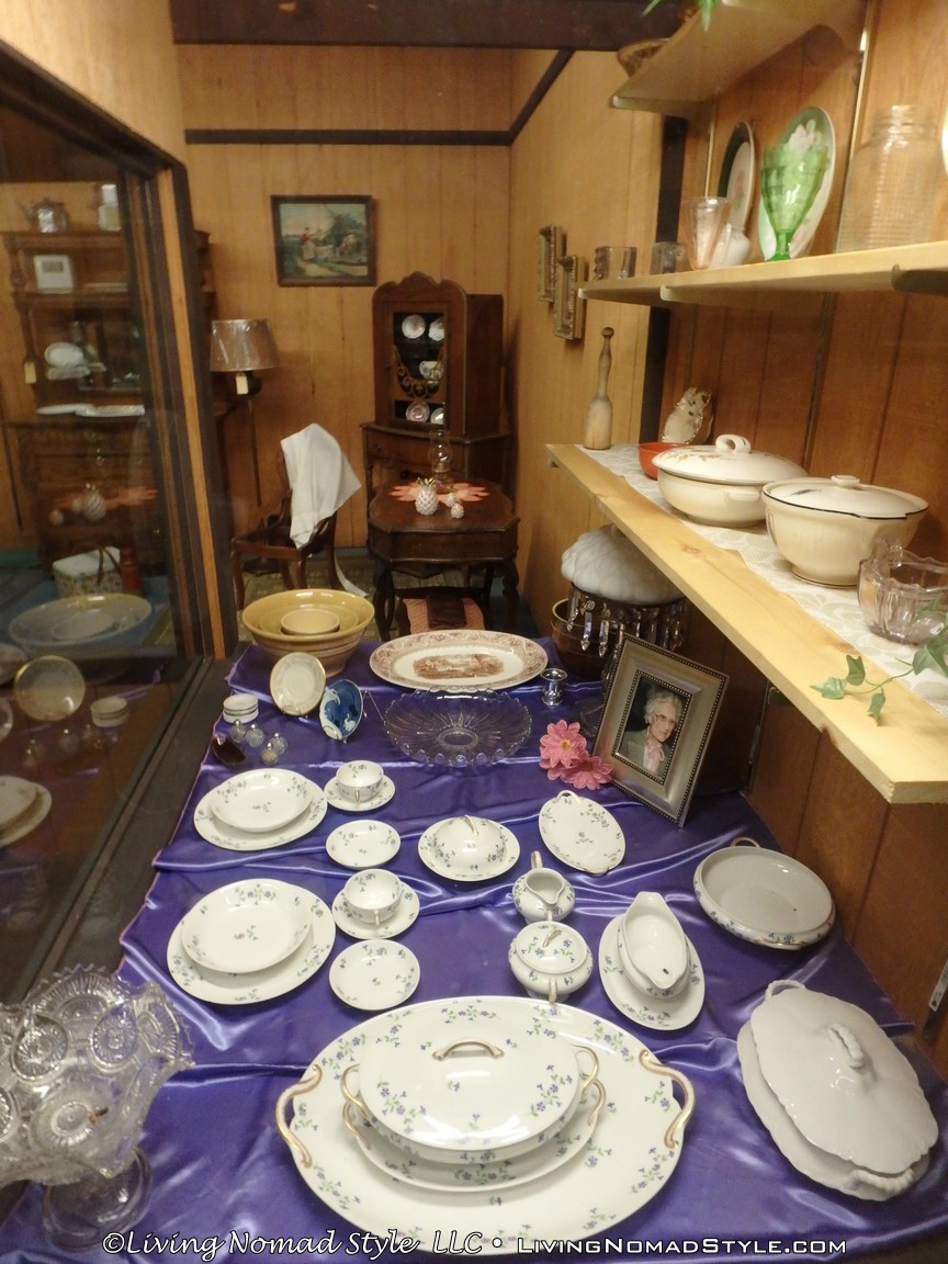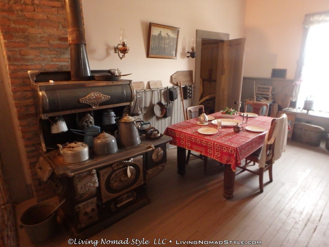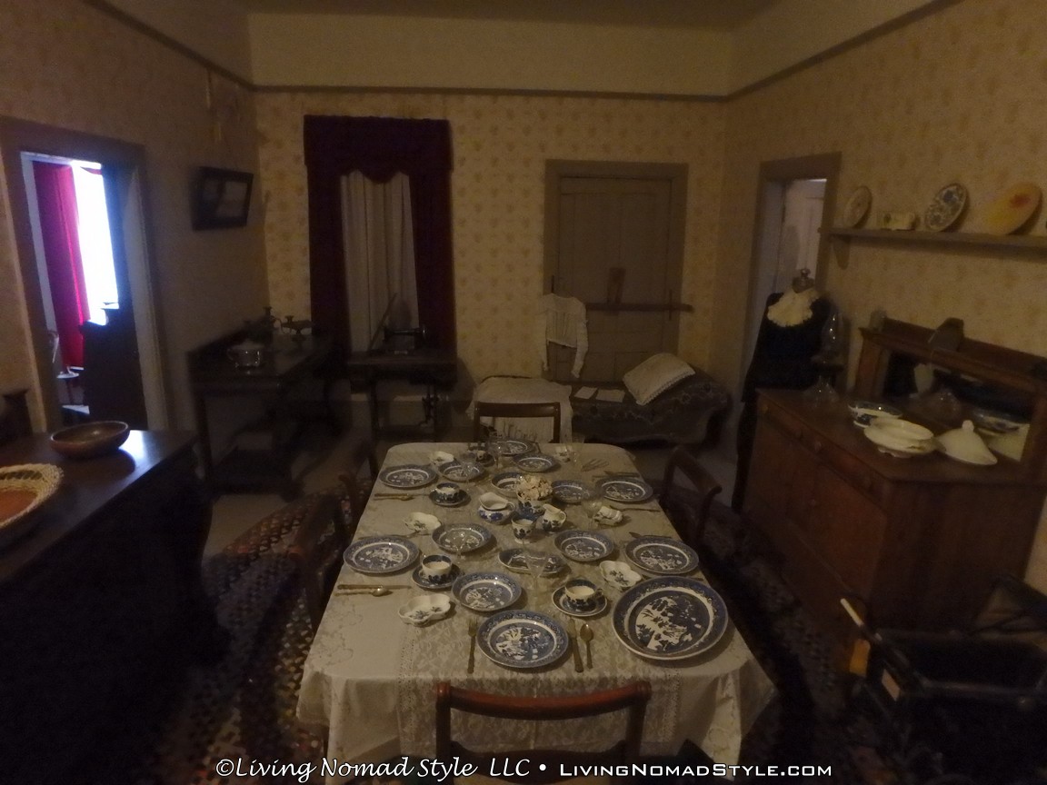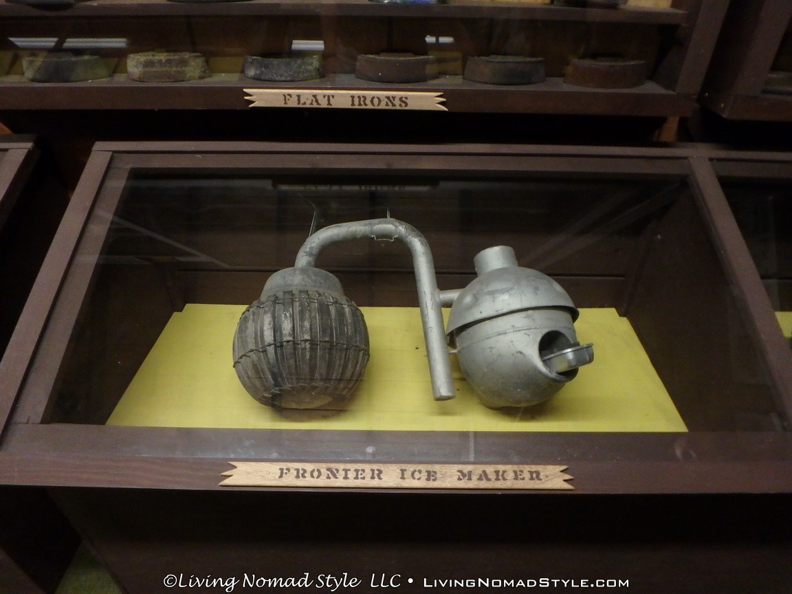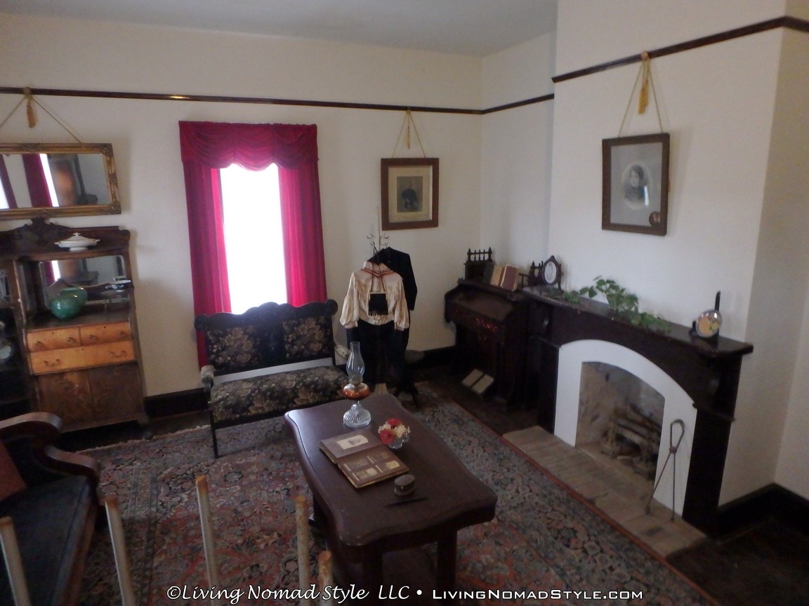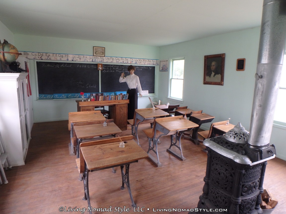 One building was a replica of an old officer’s quarters. One held periodicals from the early 1900s as well as medical devices and pictures of nurses. Next door was an old country school house. And the next building down held wagons of all manner as well as many old period articles like a mobile bar, a chair made out of bull horns, homesteader trunks and a coffee mill.