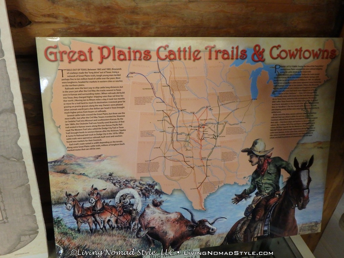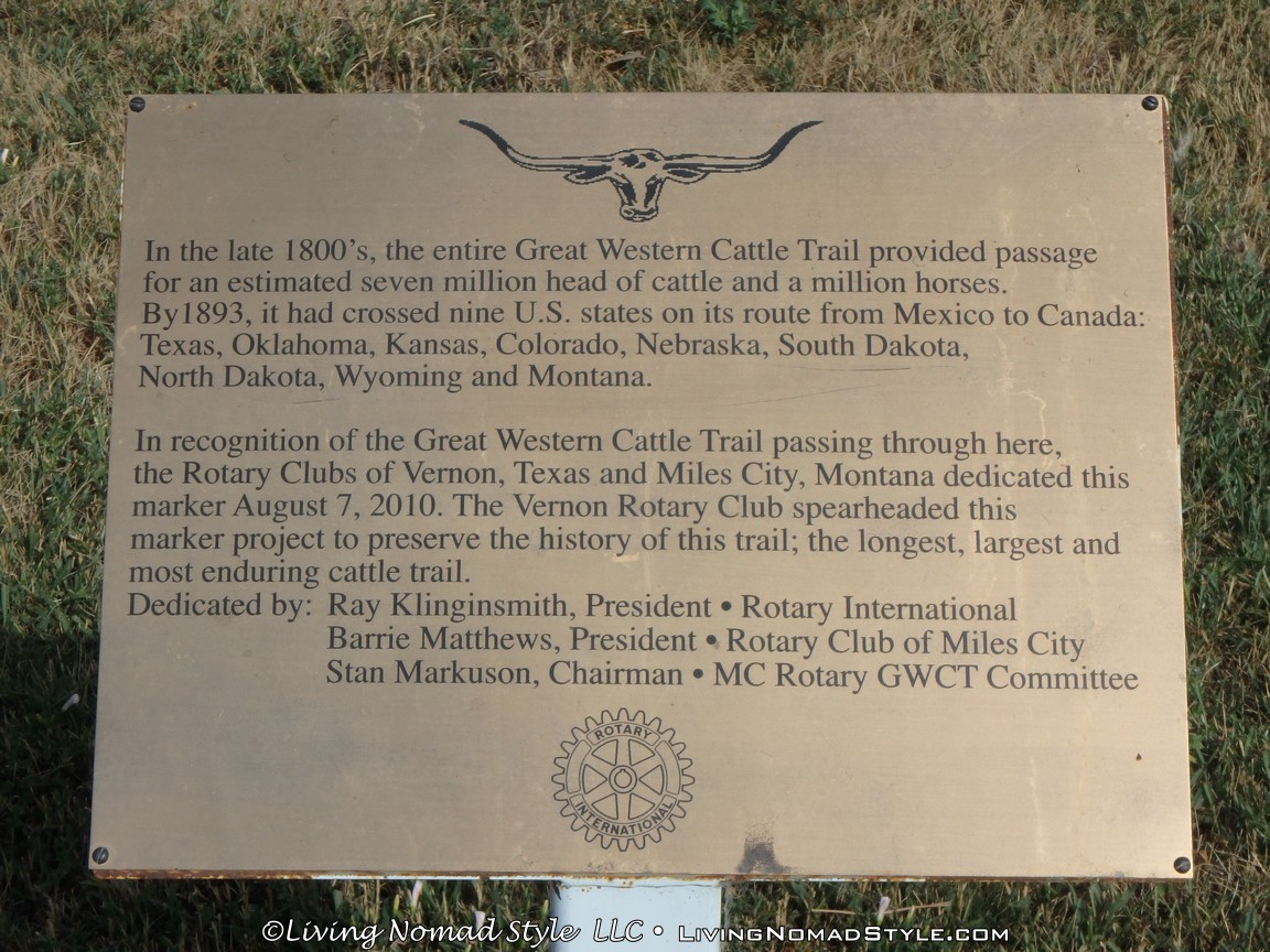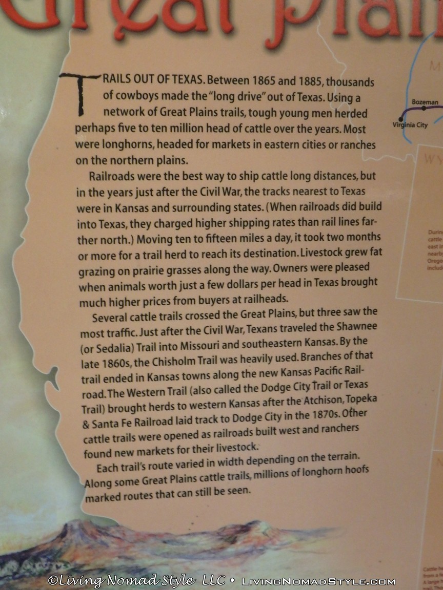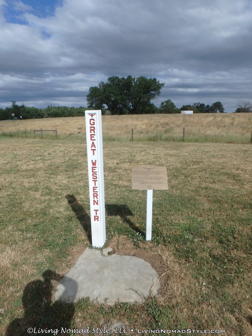 We even saw an old post on the edge of the grass that said “Great Western Tr.” This was one stop on the Great Western Cattle Trail. This trail provided passage, starting in the late 1800s, for an estimated 7 million cattle and horses. At its height, it connected Canada to Mexico across 9 US states: Texas, Oklahoma, Kansas, Colorado, Nebraska, South Dakota, North Dakota, Wyoming and Montana.