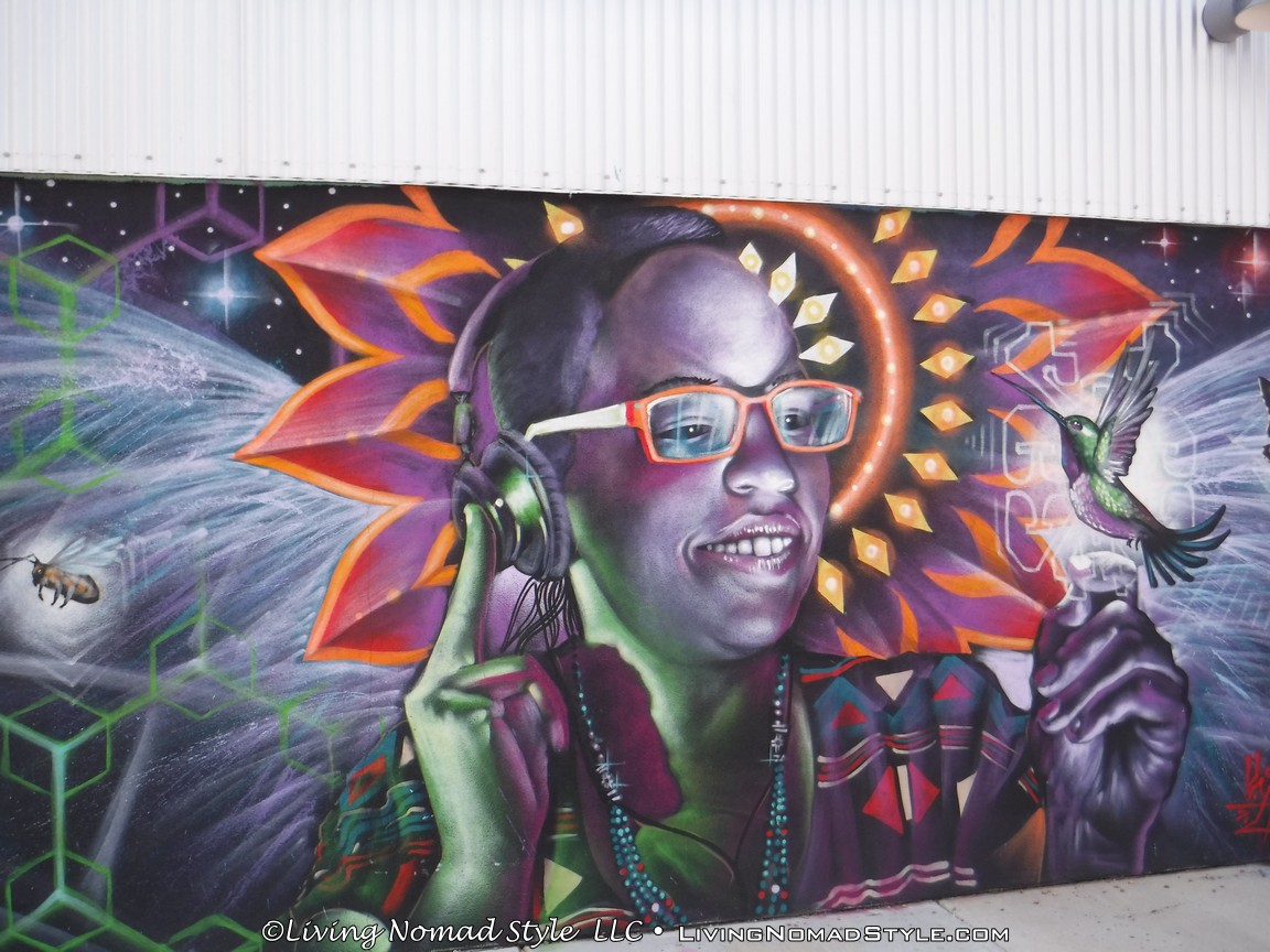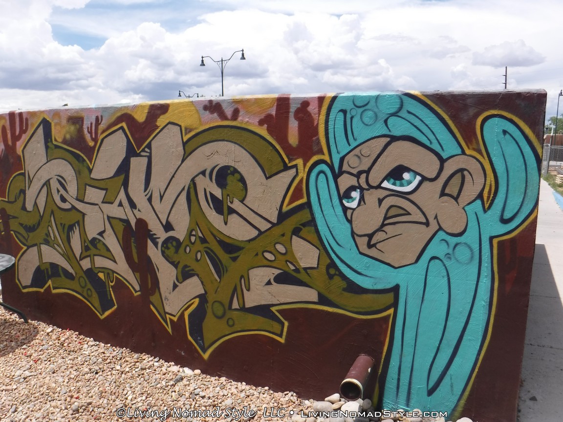 Also, if you will walk down Callejon, back to Paseo De Peralta, there are two other places worthy of checking out. Just across the railroad tracks (yes…the other side of the tracks), you will find Warehouse 21. It is an art and entertainment place. It seems to be kid (young to adolescent) focused. Around the whole building and surrounding area is adorned with paintings and murals of all manner of focus. There is even a TV you can sit in to take pictures with.