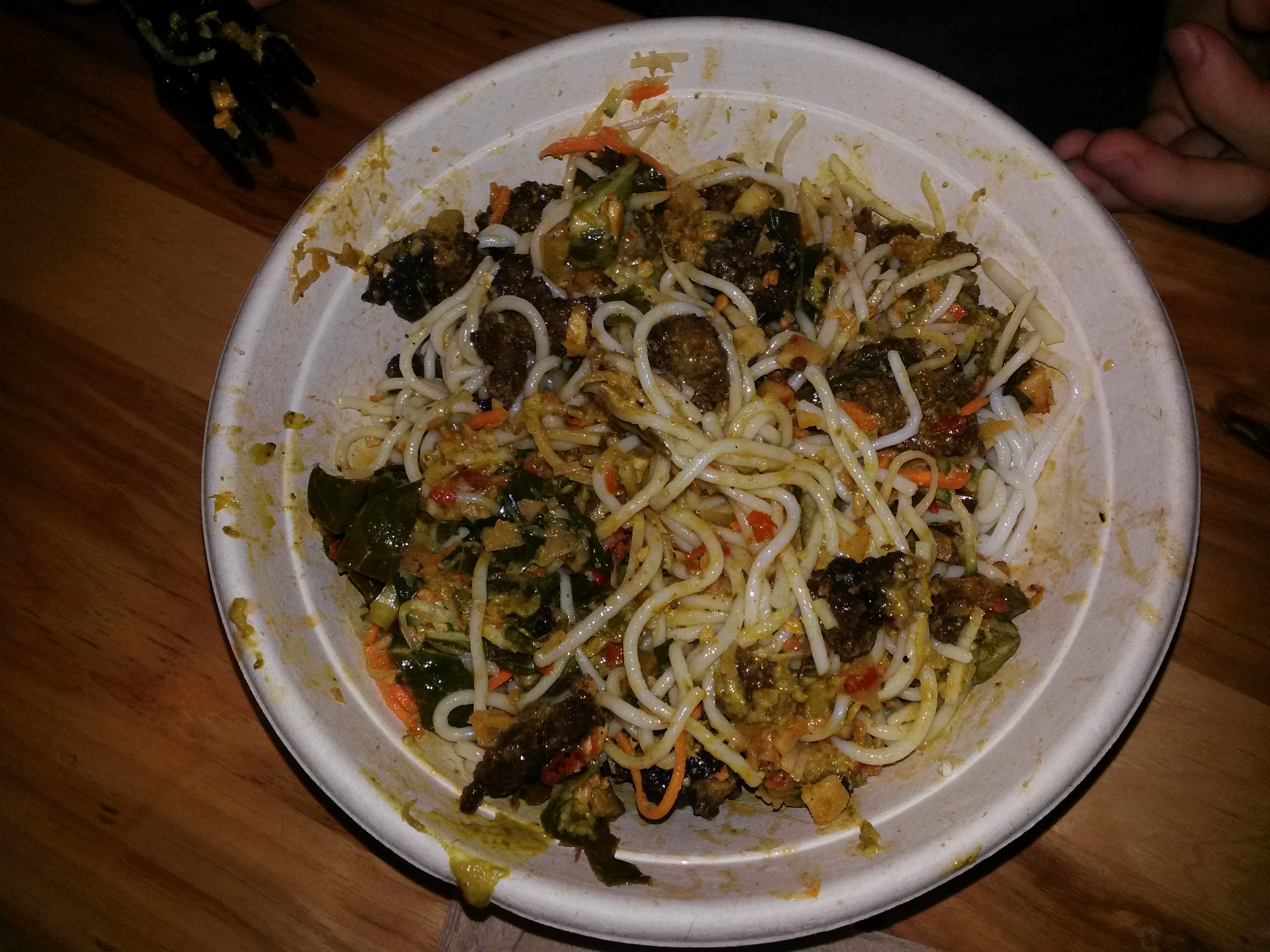 *Side note here: Our food was prepared beautifully. It came out looking wonderful. We were all famished, and quickly started to dig in before we thought to take some pics. So, all our food photos are of our dishes already in the mixed up, and half devoured stage.