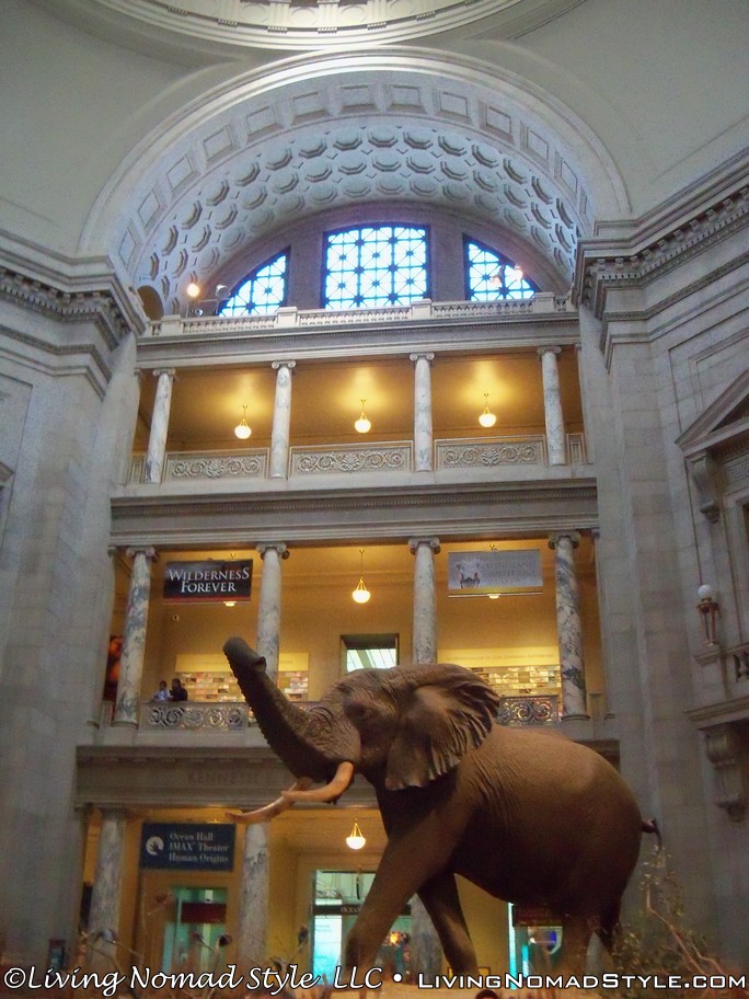 We rode in on the Metro and got off at the Smithsonian exit. With a short walk we were at our destination. As with the Smithsonian National Air and Space Museum, this museum was huge. We entered and were greeted by a real life-sized elephant statue. He stood in the middle of a 4 story open center area.