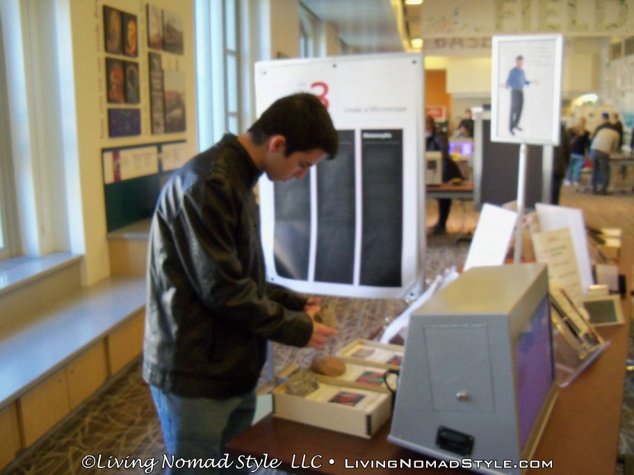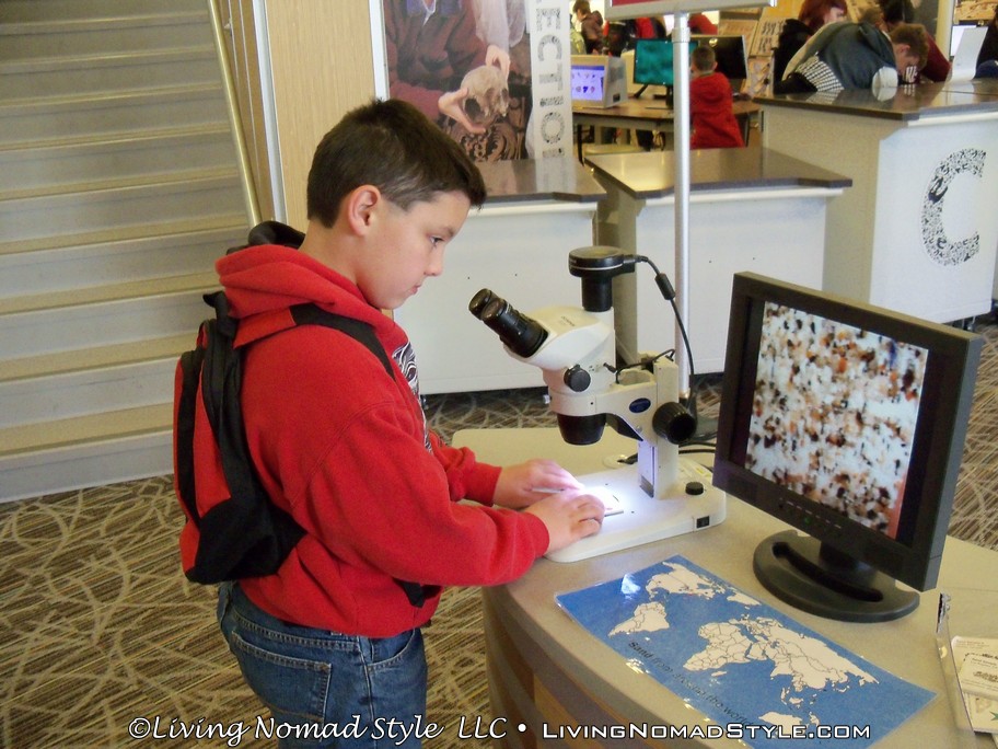 Our first exploration was Q?ius. This was a section that allowed you to examine many things under a microscope; from metals and rocks to different types if sand. Our younger Nomads found it fascinating. I have to admit, I thought it was pretty cool myself.
