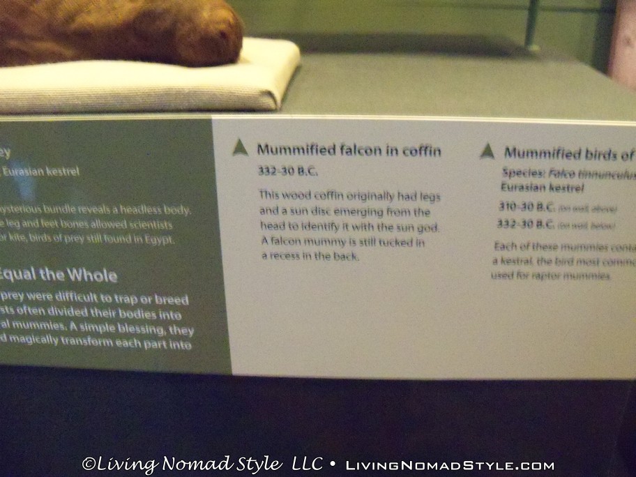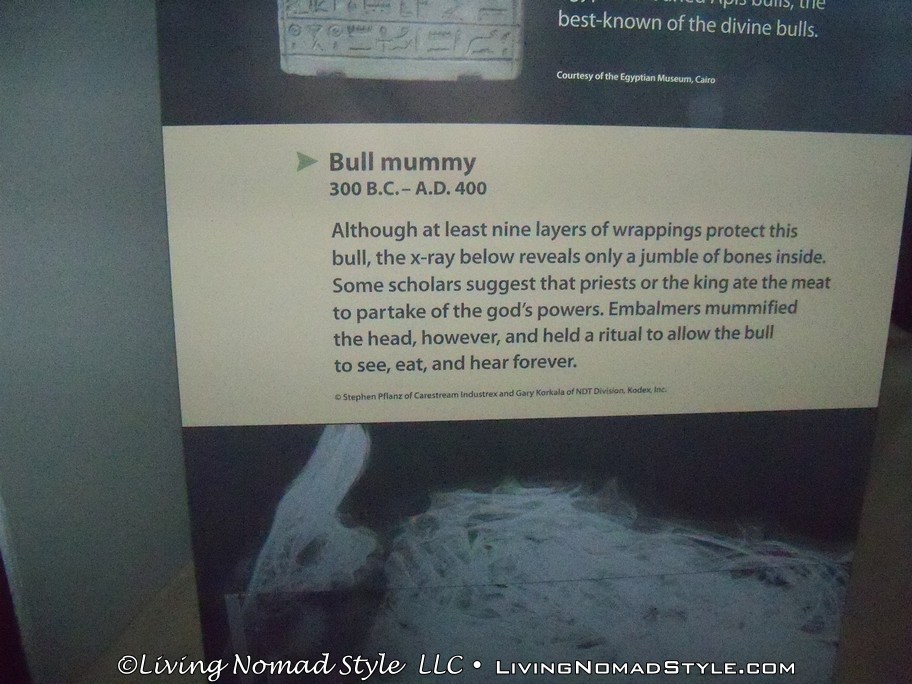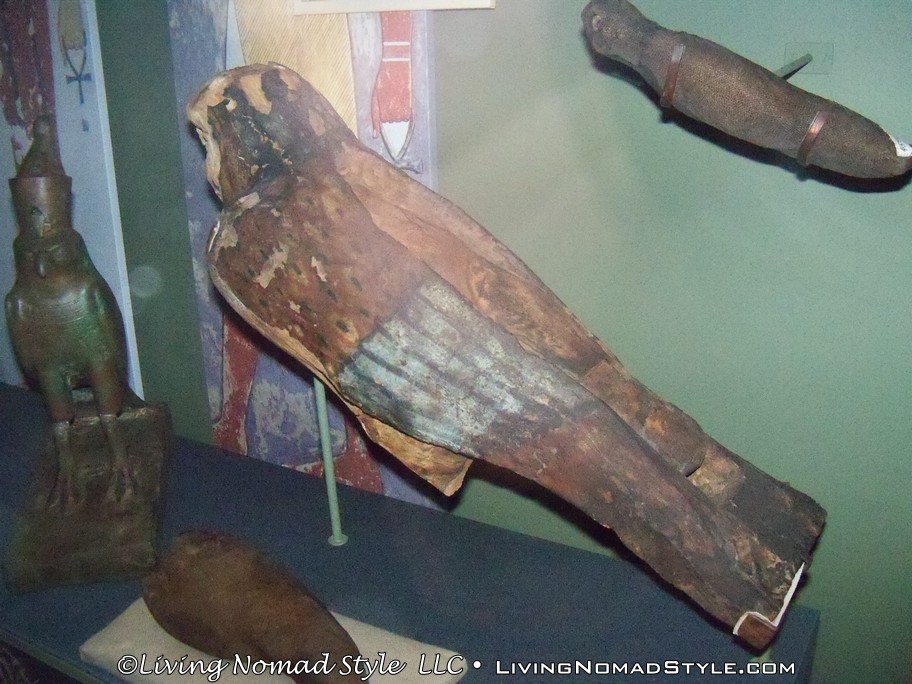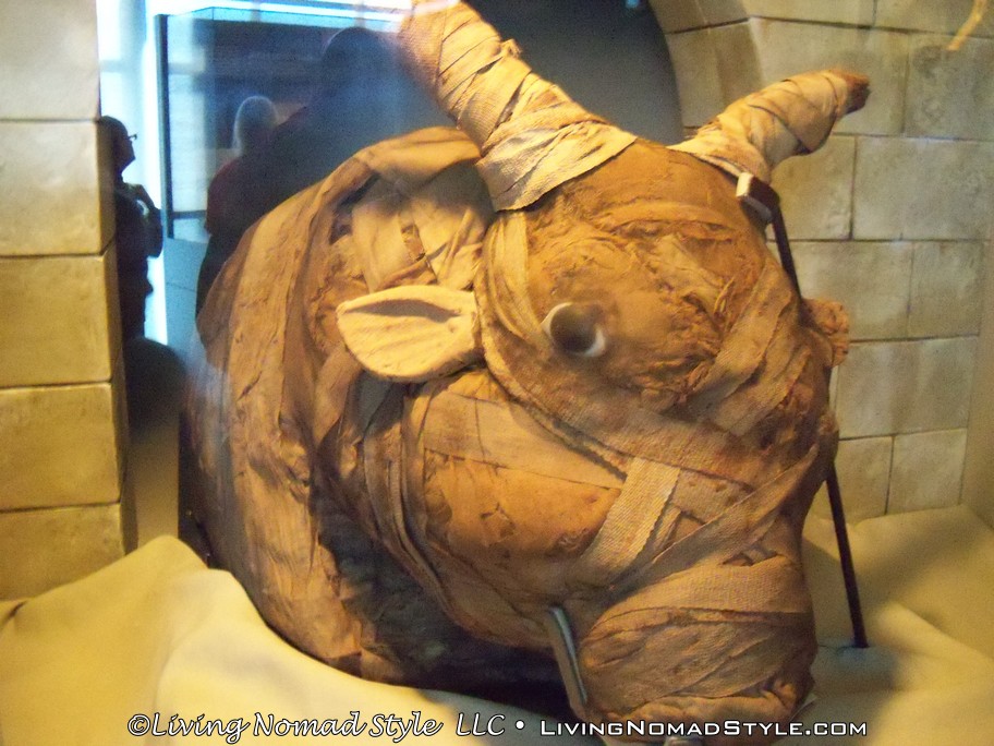 We saw a bull mummy (an actual bull that was mummified), a mummified falcon coffin, a sarcophagus, a child mummy and an adult mummy. It was amazing to read what they went through to mummify these organic beings. And, it was amazing to see one mummy’s remains that was over 2,200 year old.