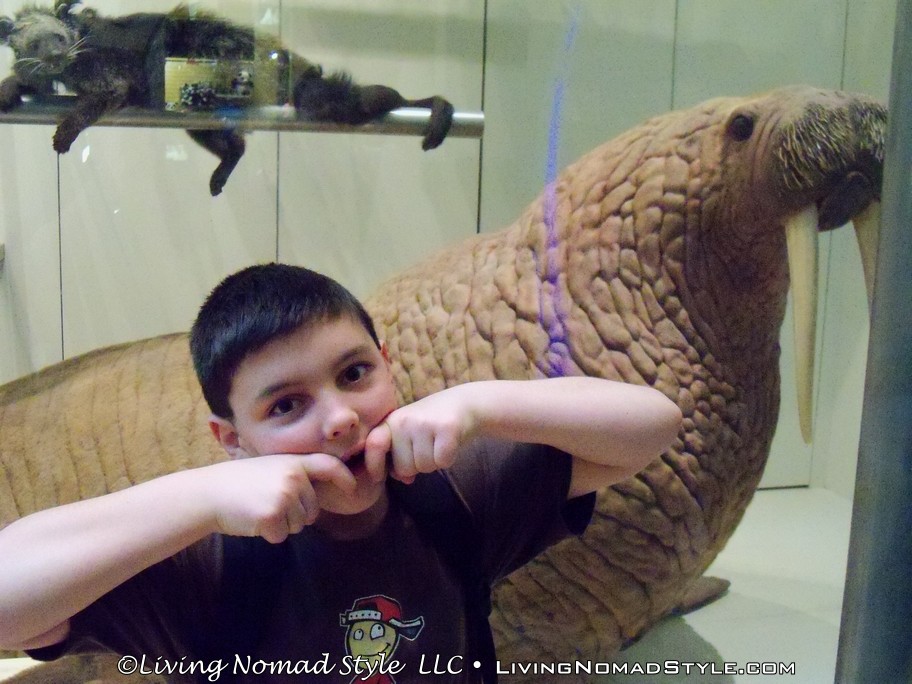 After we left the pre-historic area, we entered into a modern animal area. They had recreations of all manner of animals, even an Okapi. What is that? It has a deer body, zebra striped legs and a head and tongue like a giraffe. I simply could not get over the size of these creatures. I knew that a moose was big. But it is taller than a full-sized pickup and about as big. And, when I saw the walrus, it was as big as a VW Bug! I honestly did not know these animals were as big as they are.