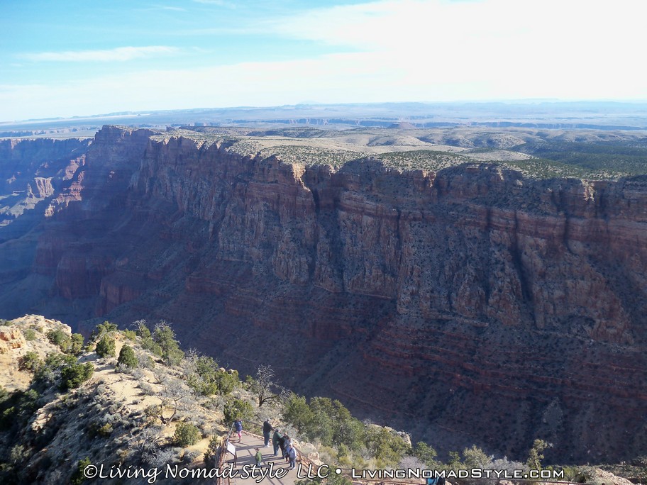 We continued onward towards Grand Canyon Village. Along the way there were multiple pull offs and lookouts. We pulled into every one and explored. Most only had a few people and we were able to see a multitude of different angles of the canyon. At one point, we actually saw a spot where the Colorado River had eroded all of the soil and rock down to the actual plate of the Earth’s crust!