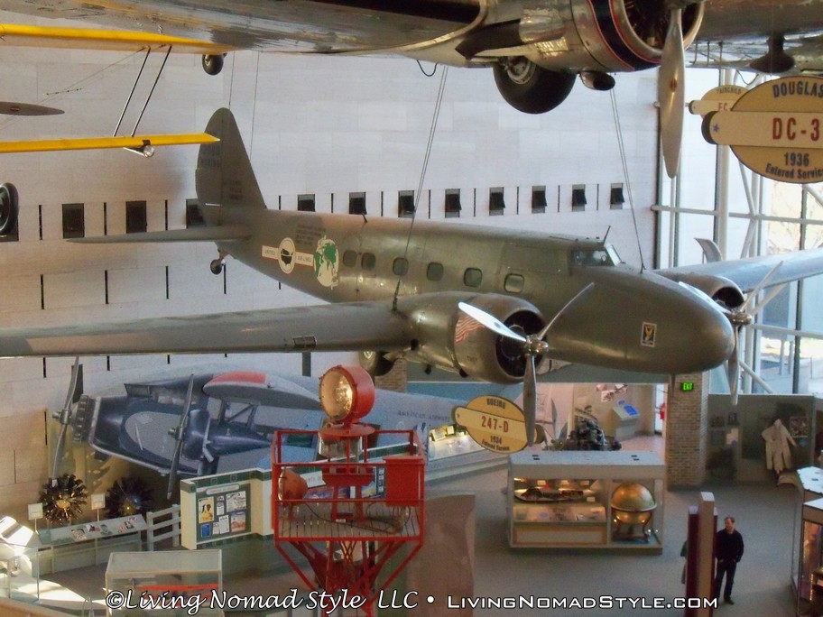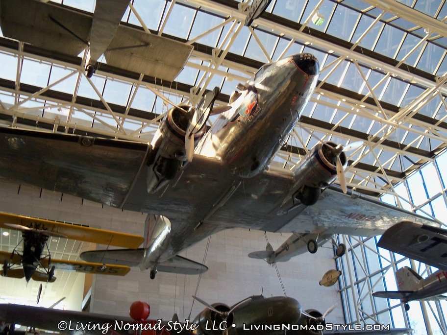 Our first stop was the Smithsonian National Air and Space Museum. Mama Nomad and the boys had been reading about the Wright Brothers. So this trip started with a focus on these pioneers of flight. This place covered everything from the thoughts of flight before the Wright Brothers up to space craft and everything in between. We saw designs by people like Leonardo Di Vinci, the planes that battled the skies during multiple wars throughout the years and the drastic change in how airlines both dressed and operated from the 1960s until now.
