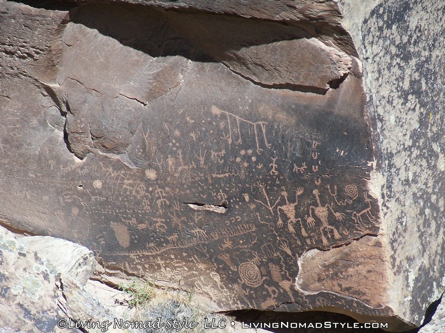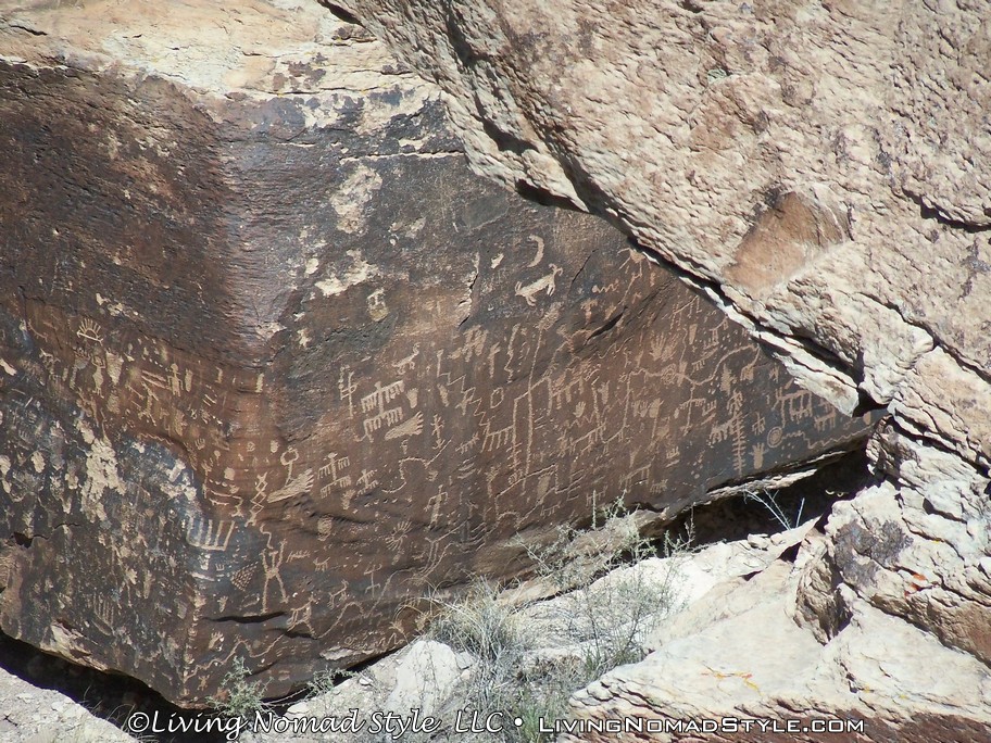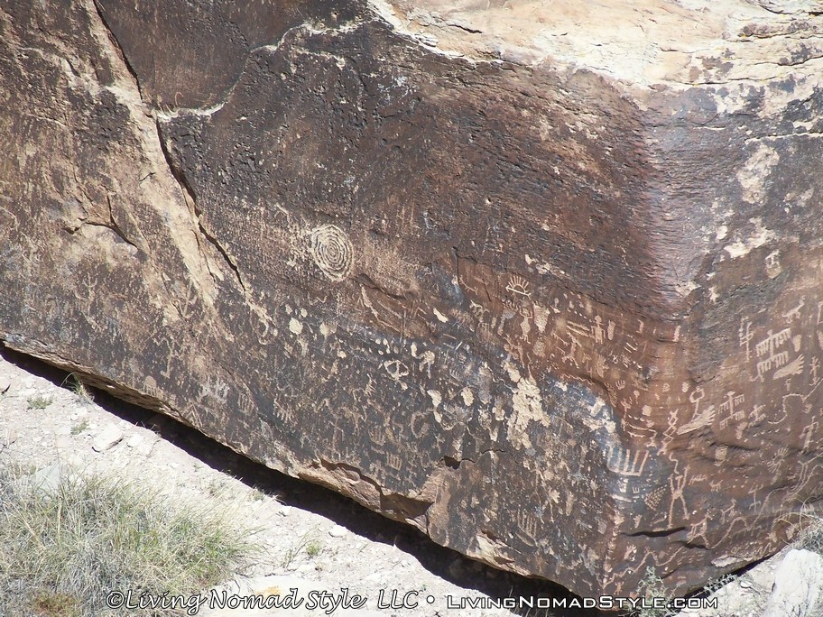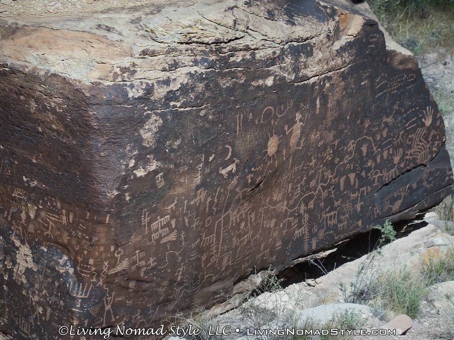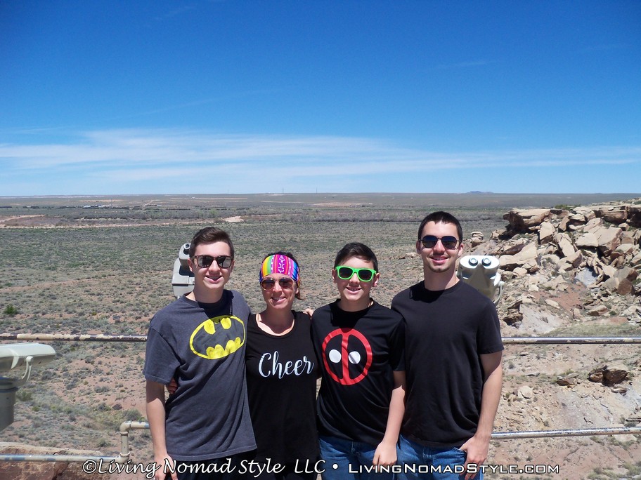 Once we took in the significance of the Route 66 spot, we continued southward until we got to Newspaper Rock. It is called that because over 650 images have been carved into the rocks. These are called petroglyphs. They were created by the ancestral Puebloan people between 650 to 2000 years ago. It is theorized that multiple generations had carved images into these boulders. I joked around with the boys and told them that they are looking at some of the earliest forms of graffiti. Hahaha.