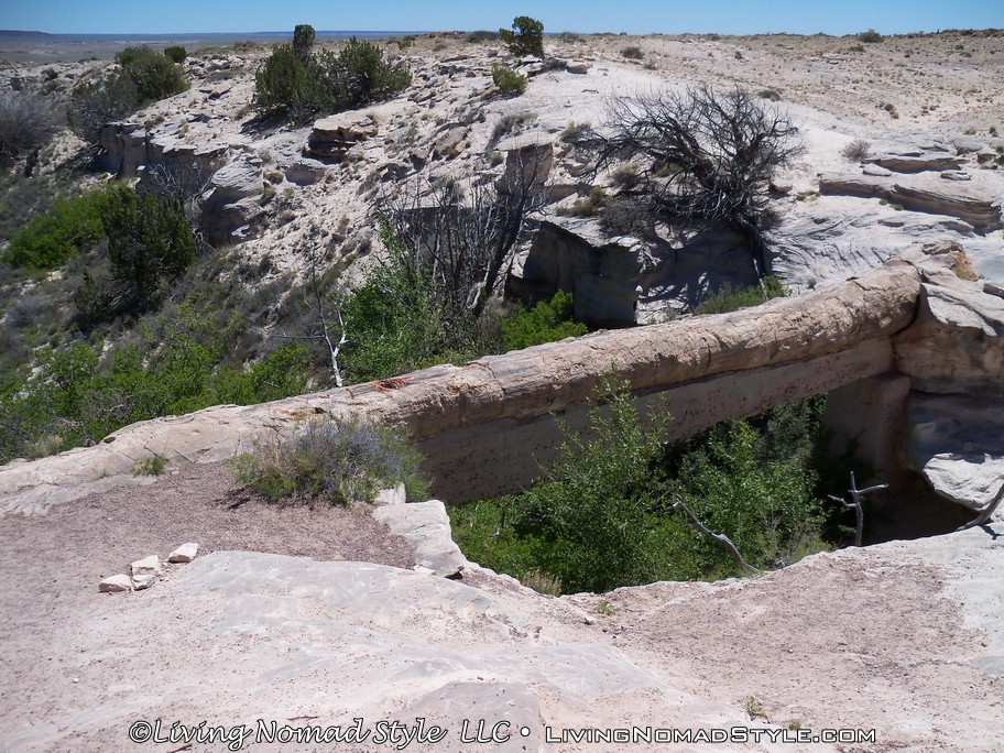 Next, on down the road, we came to the Agate Bridge. This is one of the first examples of petrified trees that we have seen. This log fell into a river and was covered by sediment. As previously described, silica from volcanic ask combined with it to make it into quartz. As the river continued to erode the rock and dirt along the riverbed, it stayed in place. It looked like a bridge across the river, with a length of 100 feet. The river has since dried up and men have put concrete under the petrified tree so it would not eventually crack in half. So, it is still there to see and enjoy.