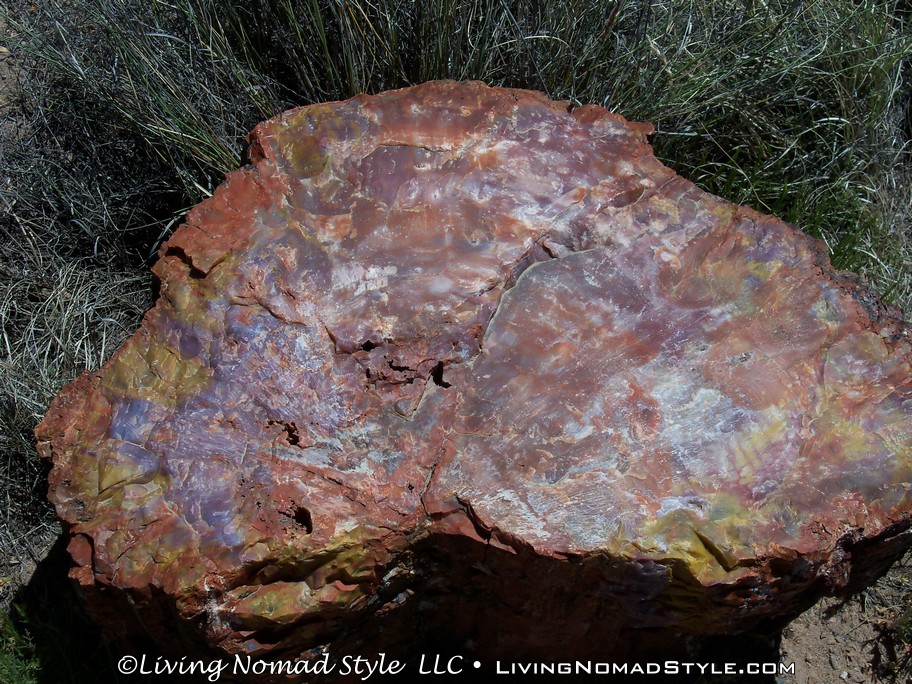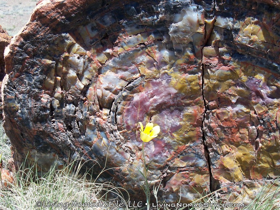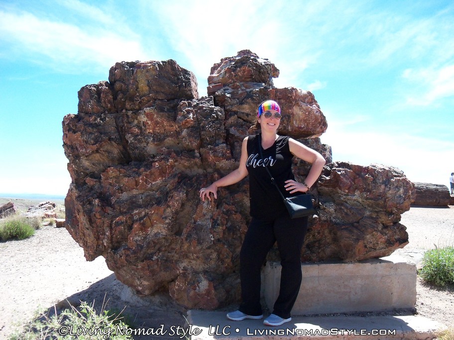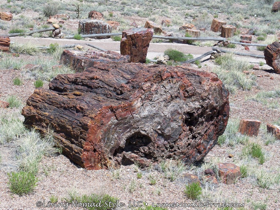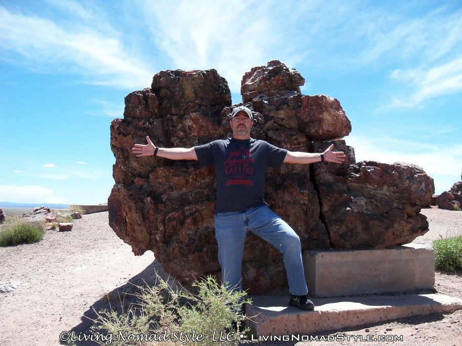 Leaving the information center feeling relieved, we headed south to Giant Logs. This is behind the information center and up on the hill. There is a petrified log there called Old Faithful. This log spans more than 10 feet wide at the base. It truly was a giant log. It was surrounded by other large logs, but, it truly was the giant of them all.