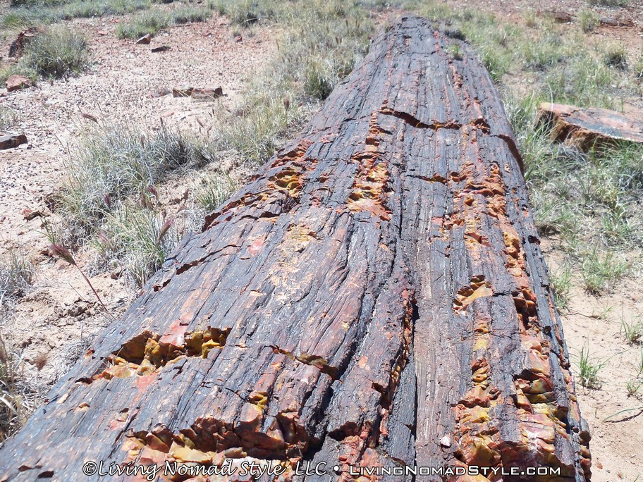 Millions of years ago when these trees fell, many of them were covered by river sediments. This prevented decay. And, volcanic ash dissolved into the groundwater which provided silica to the log. As the two interacted with each other, the log slowly turned from an organic material and crystallized into one made of quartz. That is the process by which wood becomes petrified.