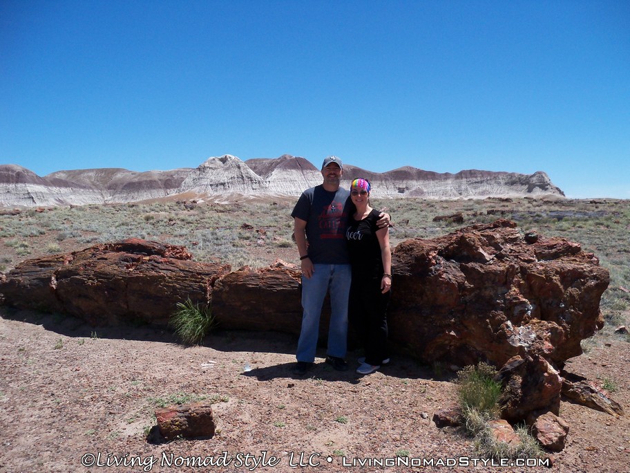 On our way from Utah to our new home base in New Mexico, we were passing by the Petrified Forest National Park and decided to dip in and check it out. If you enter from the Northern Entrance, off of Interstate 40, you will first come to the Painted Desert. That is because the Painted Desert is about 7,500 square miles and the Petrified Forest National Park is completely inside it. For those of you who have followed our travels, you will recall seeing pictures from the South Dakota, North Dakota and Montana Badlands. The Painted Desert reminds me of the same type of landscape but with different colors. It has more of a reddish tint to it. Looks pretty when you see it from an elevated vantage point.