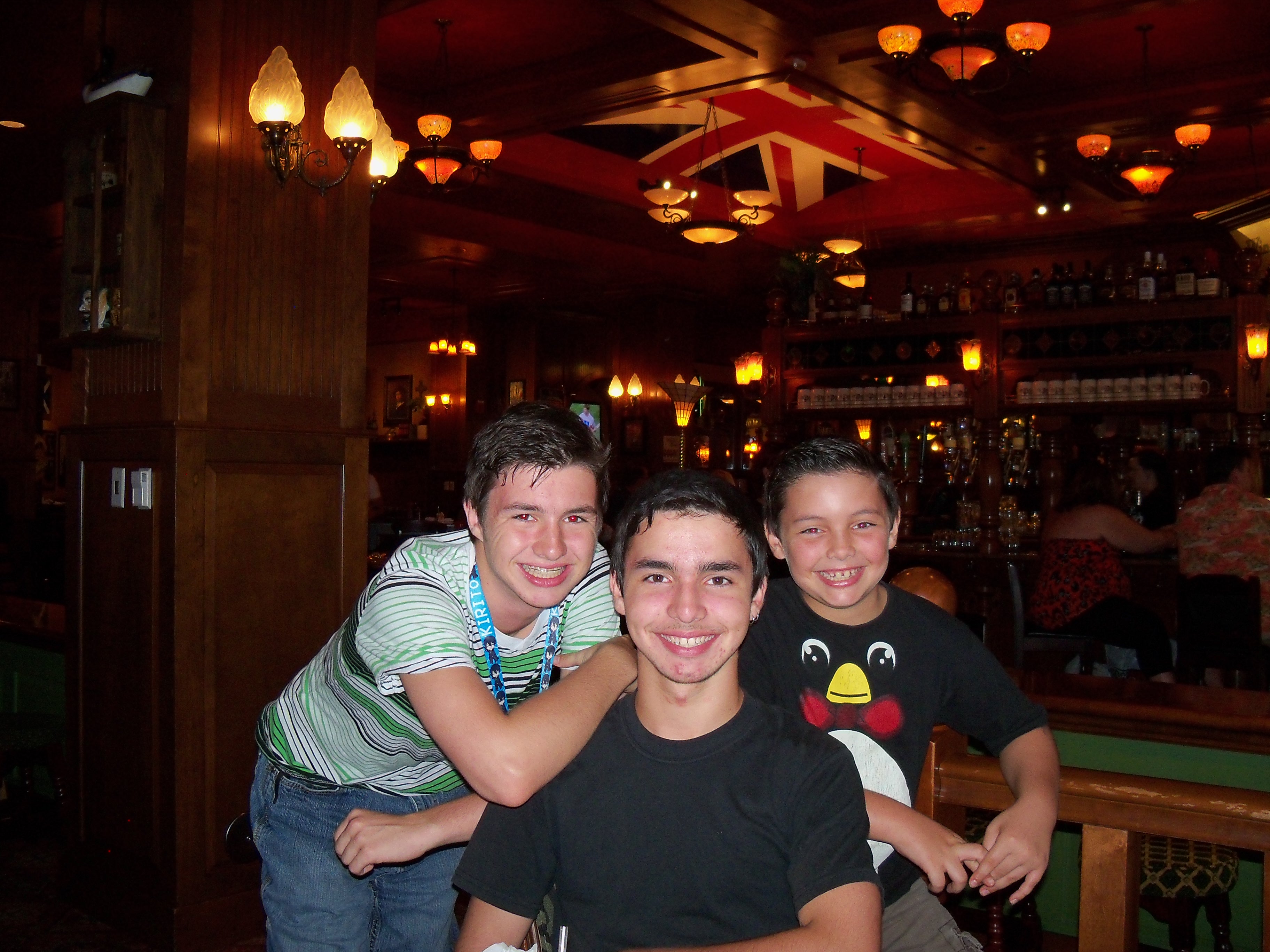The Pub - Over The BarThis restaurant is British inspired with a clearly American presentation and promotion. They served British, Scottish, Irish and American food as well as a plethora of different beers: lagers, ales, etc. We walk in the front door and we are met with men and women in kilts. They all sported t-shirts that had The Pub logo on it. The entire place was designed in old world style hardwood with new age flat screens adorning every wall. The British Flag was painted on the ceiling and there are posters of movies, entertainers and other British related images everywhere.