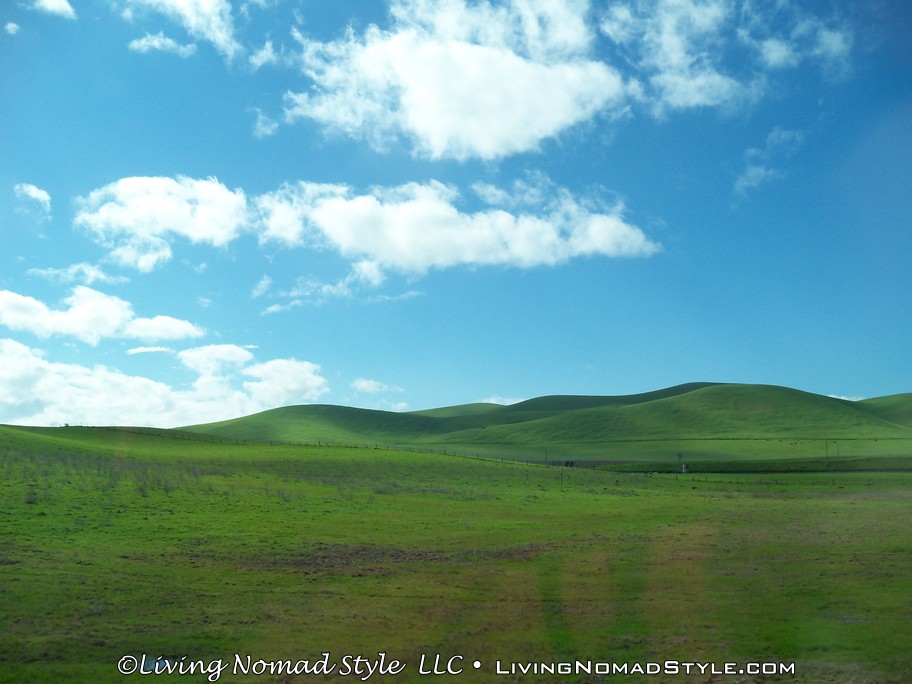 After exiting Napa Valley, we entered farmland. It was miles and miles of farms that raised livestock, crops and orchards of all kinds. Some of the hills were so green and rolling that it actually looked fake. It was a sight to see and we saw it for quite a while as Northern and Central California was filled with them.