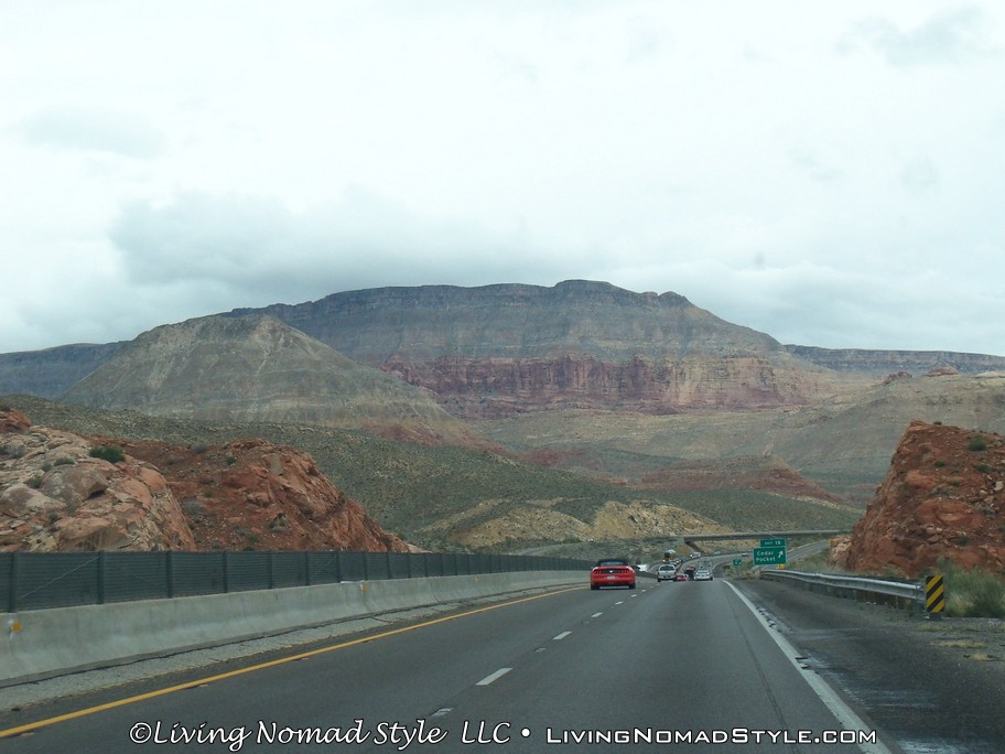 It wasn’t too much longer and we entered into Arizona, The Grand Canyon State. Although we were not at the Grand Canyon, canyons were all around us, very interesting topography. We snaked our way through the canyons until we finally came into Utah, where the land opened up a bit. There were less canyons and more mountains and mesas.