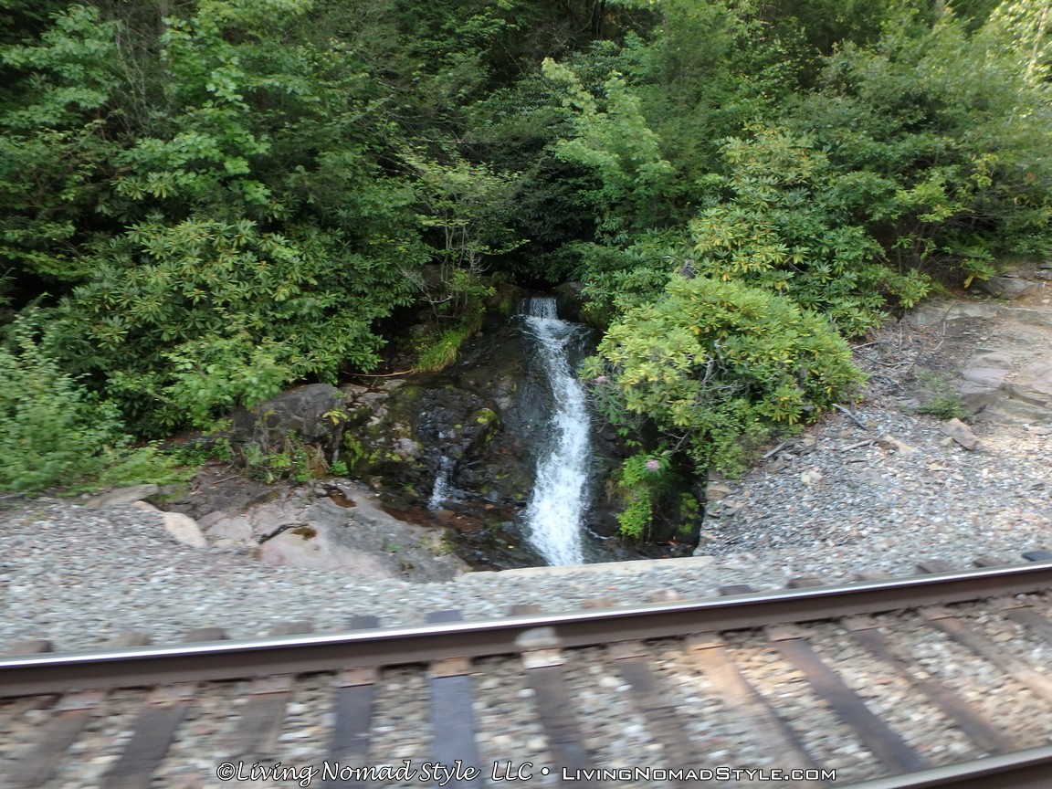 When you are riding the first direction, a conductor recites facts about the area both past and present. You will pass people on rafts and kayaks in the river, old train cars, a car turning station and even a small waterfall. Mama Nomad and I thought it was going to traverse down the Lehigh Gorge further than it did. If I remember correctly, we went about 20 to 30 minutes down the river and back. All in all the tour was relaxing and quite enjoyable.