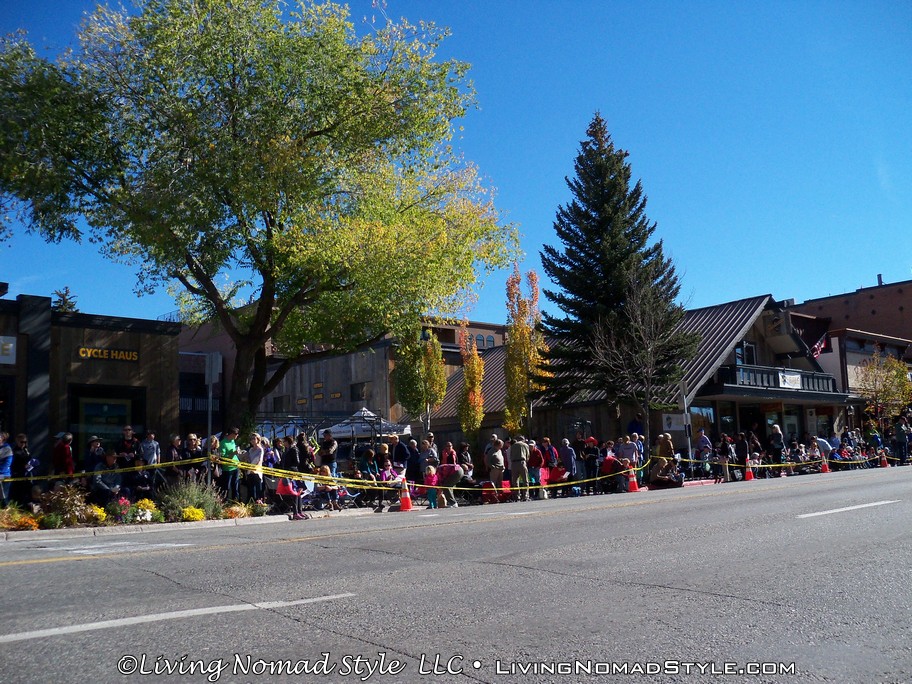 I have to admit, we were sitting on the curb and I was a little worried about the sheep running up on us or at least crowding us. Nope. Never happened. Those guard and sheep dogs were fantastic. They kept those sheep in line and moving how they were supposed to. They seem like an invaluable part of the sheep rancher’s team. Within a few minutes, all 1500+ sheep were down Main Street and headed to pasture. I have never seen anything like this. I have seen flocks of sheep cross the road, but never marched down the Main Street of a Ski Town.