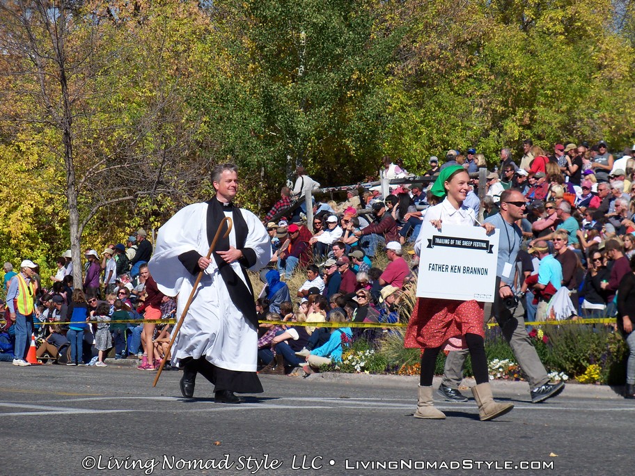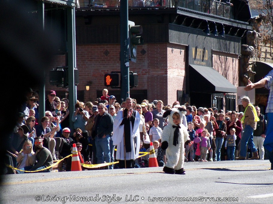 Now, back to the Trailing Of The Sheep. As I stated earlier, it is focused on the sheep industry. The parade had wagons pulled down Main Street that represented different sheep camps. There were also Scottish, Spanish, Polish and Peruvian Dancers in the parade due to their rich cultural history in the sheep industry. The Boys Scouts and Girl Scouts made an appearance as did Father Ken Brannon. While waiting on the main attraction, we even had a surprise appearance of a kid in sheep’s clothing. Then, finally, picking up the rear of the parade were 1500+ sheep and a handful of guard and sheep dogs.