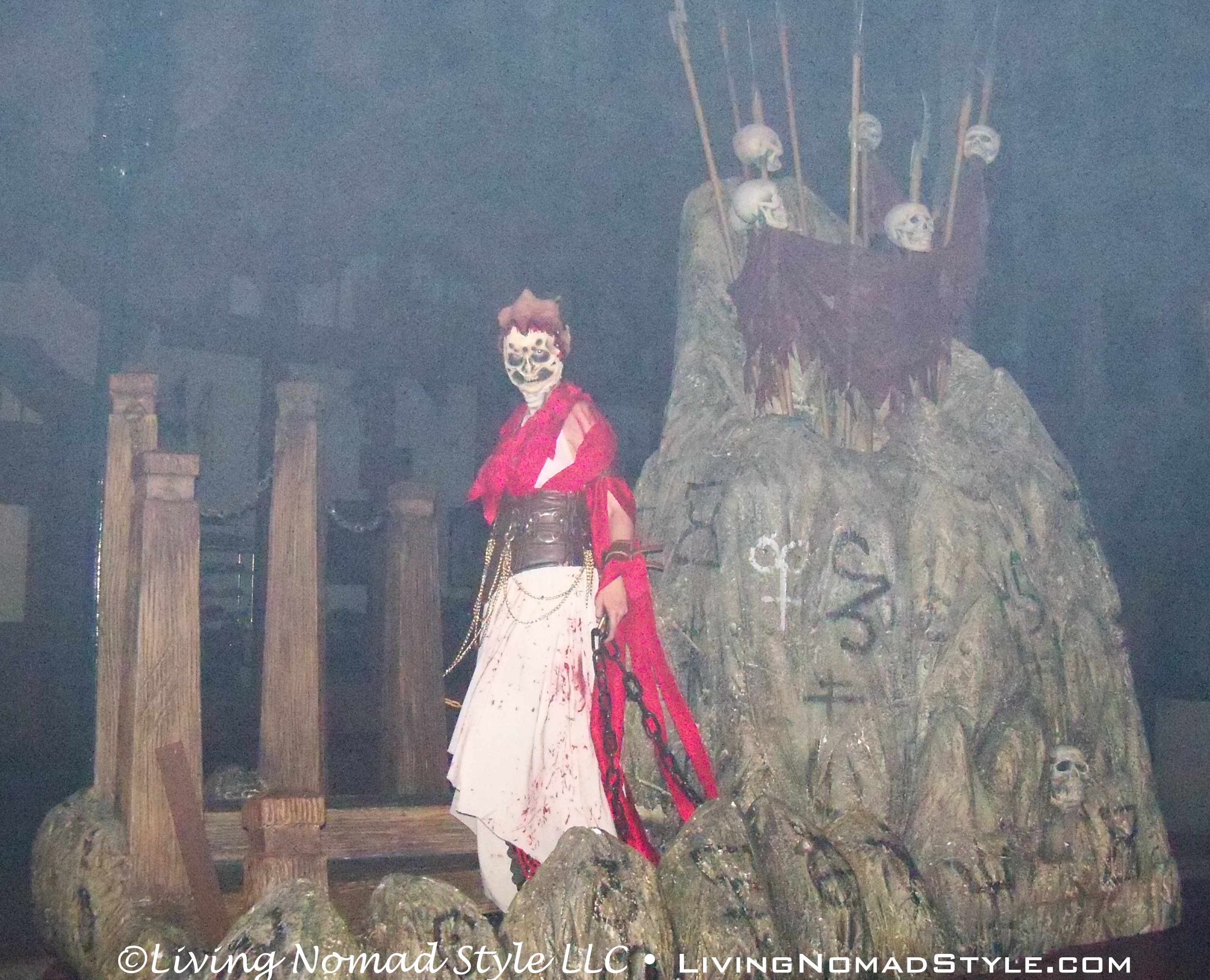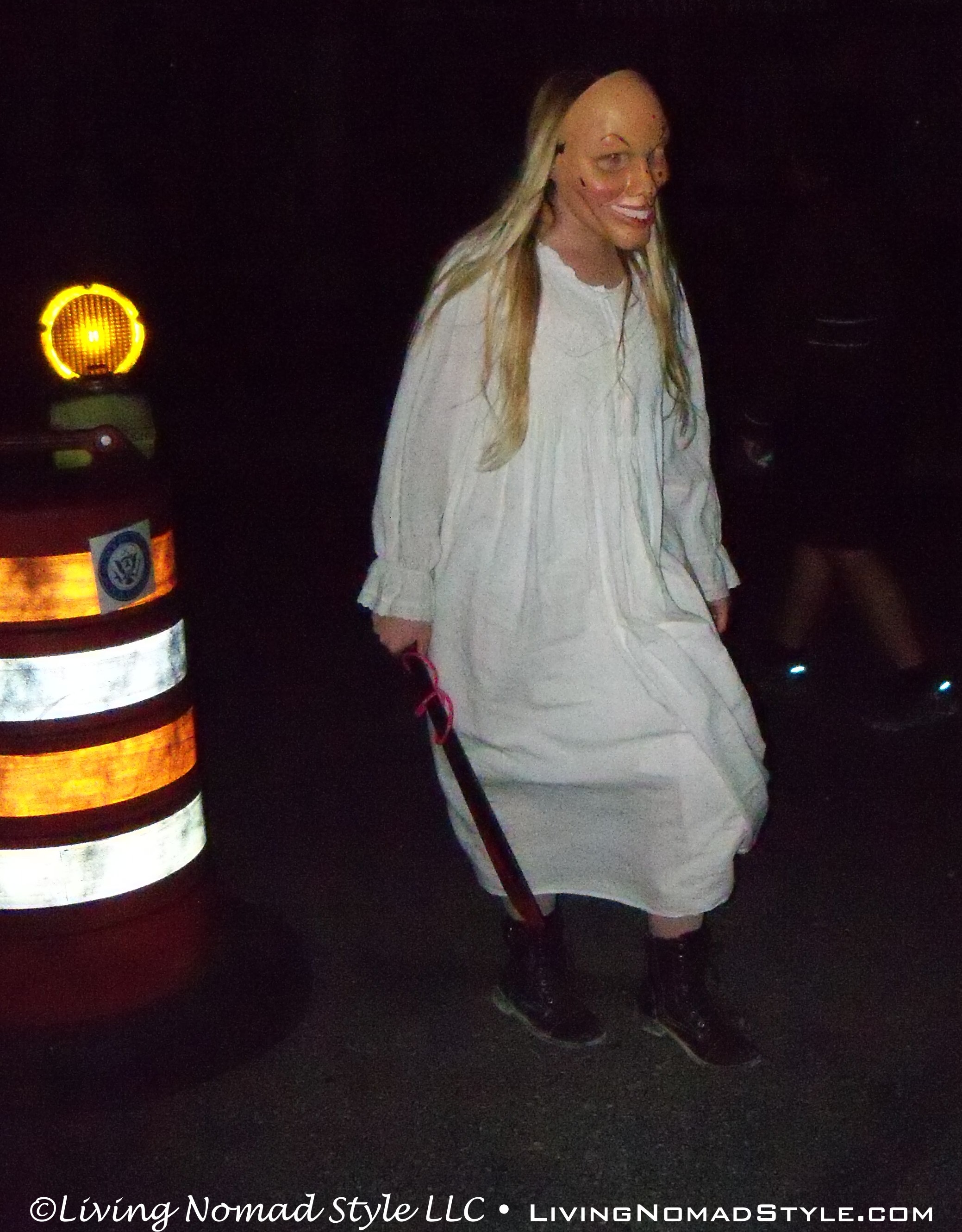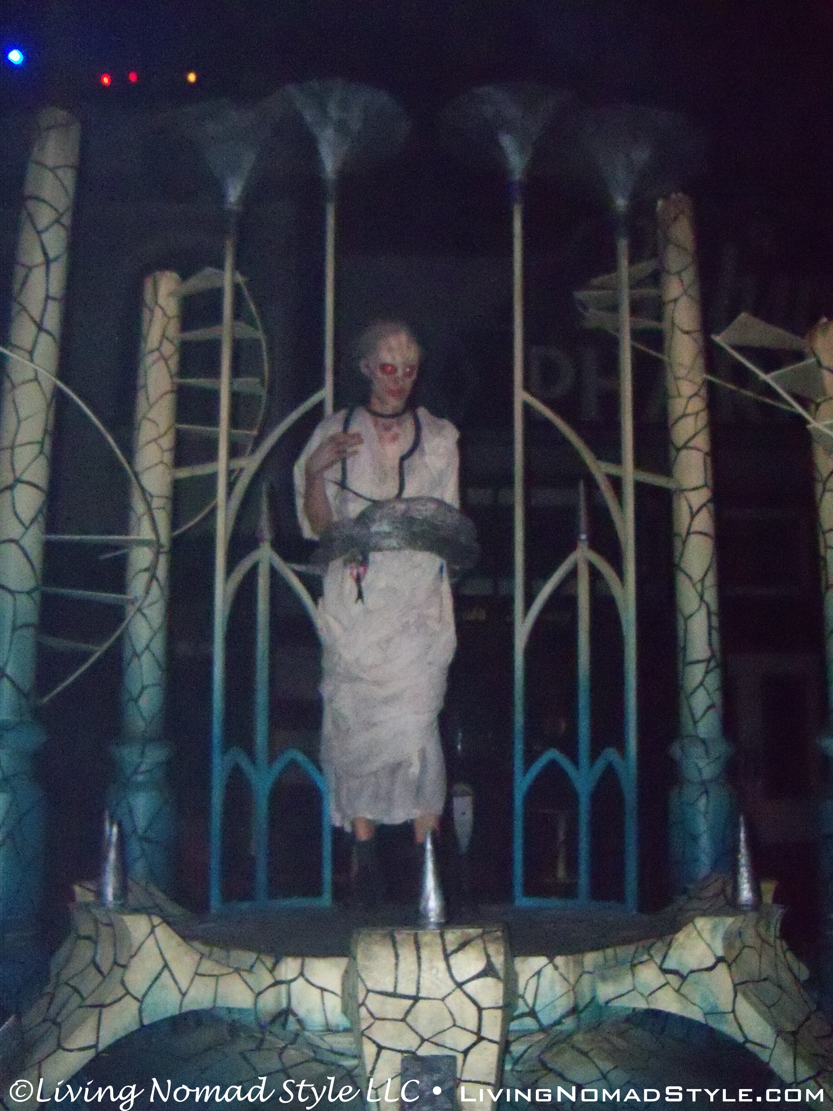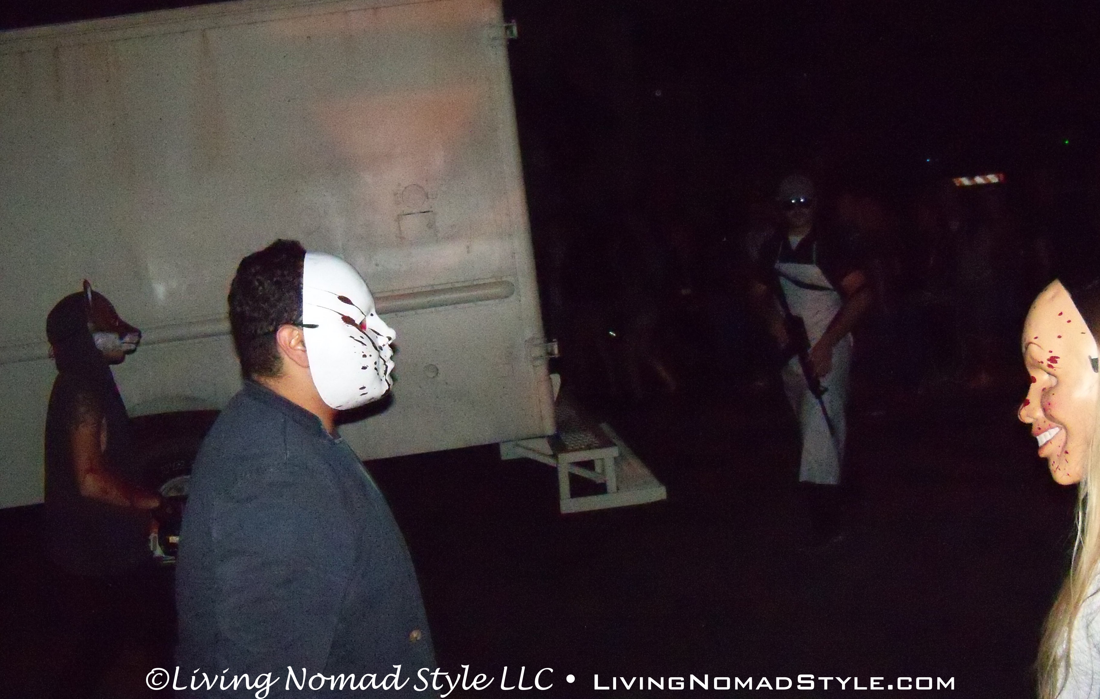 In most of the scare zones you simply walked through and different characters would come out and around you. Some would walk up and just stand so when you turned around you scared yourself. Some would run up to you full speed and scare you. While others were completely still and reached for you unsuspectingly when you walked by.