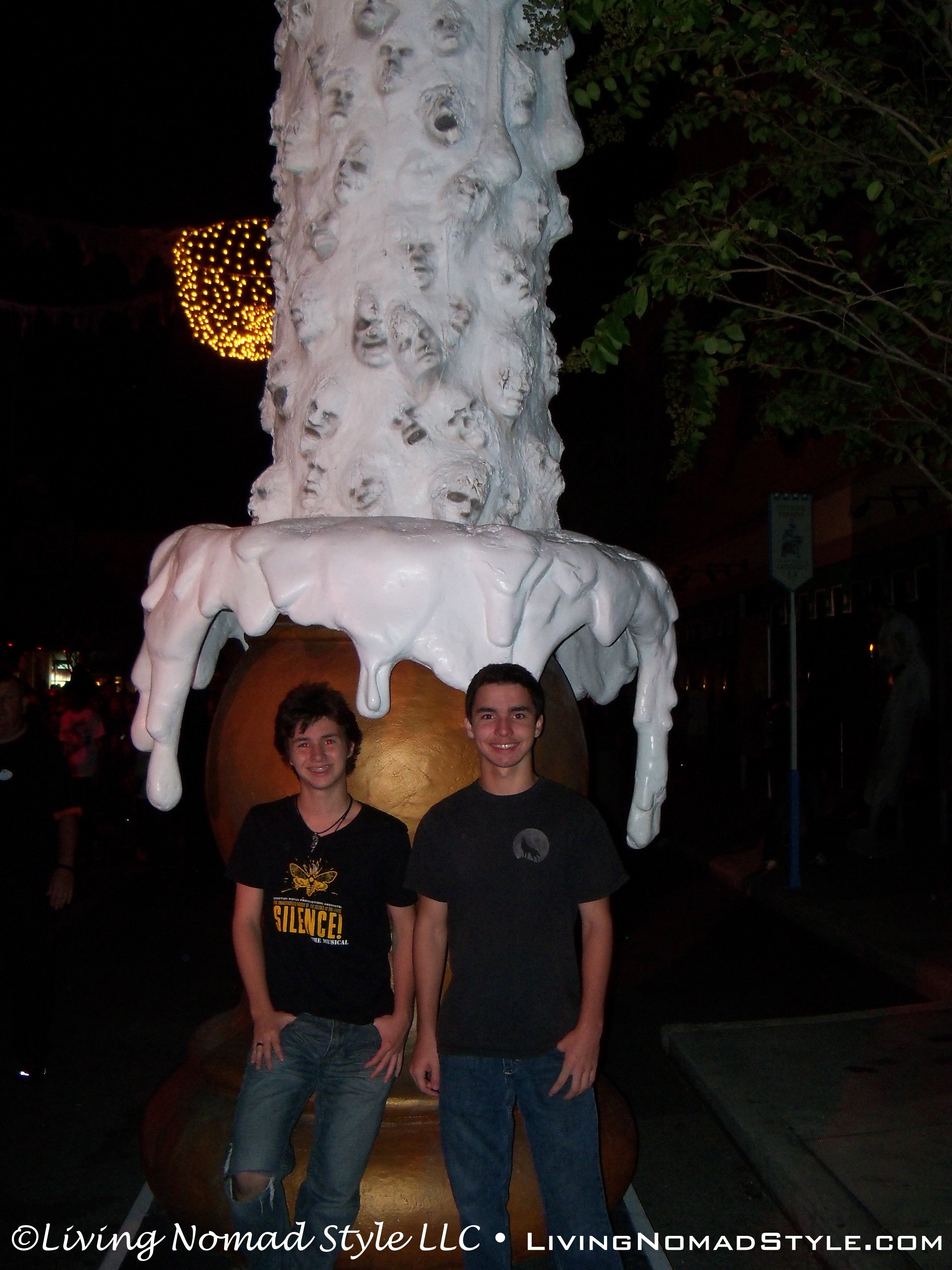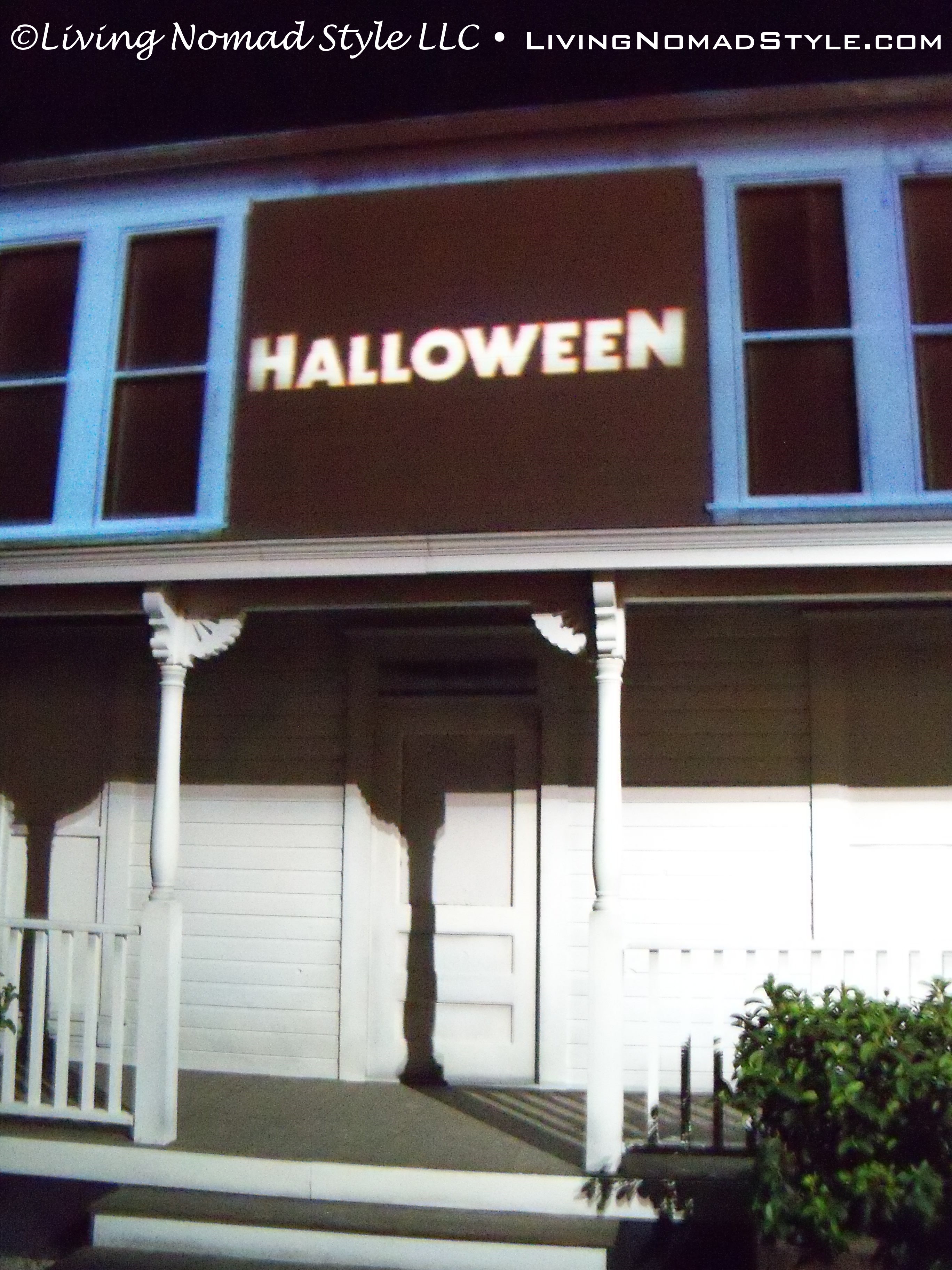 Unfortunately, they do not allow flash photography in the haunted houses, so we do not have pix from inside. We do have a couple from outside. The only one worth posting is the one of The Halloween Haunted House. The others were inside big studio buildings. The Halloween one actually had a mock-up of the original house.
