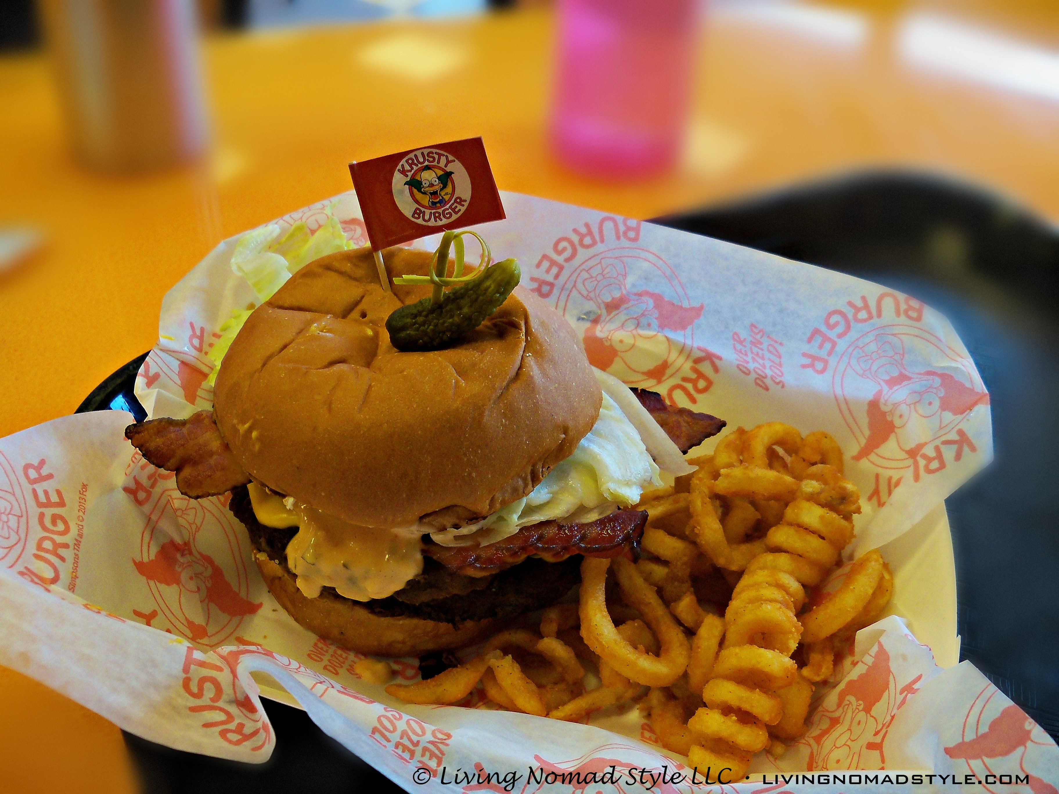 While you’re in the Simpson’s area, you might want to buy a Lard Lad doughnut or eat at Bumblebee Man’s Tacos. The Nomads took their loyalty to Krusty Burger and ordered five Cloggers. It’s a double patty burger with bacon, hot cheese, secret sauce, lettuce, tomato and curly fries; you guys want a Clogger now don’t you? It was the curly fries wasn’t it?