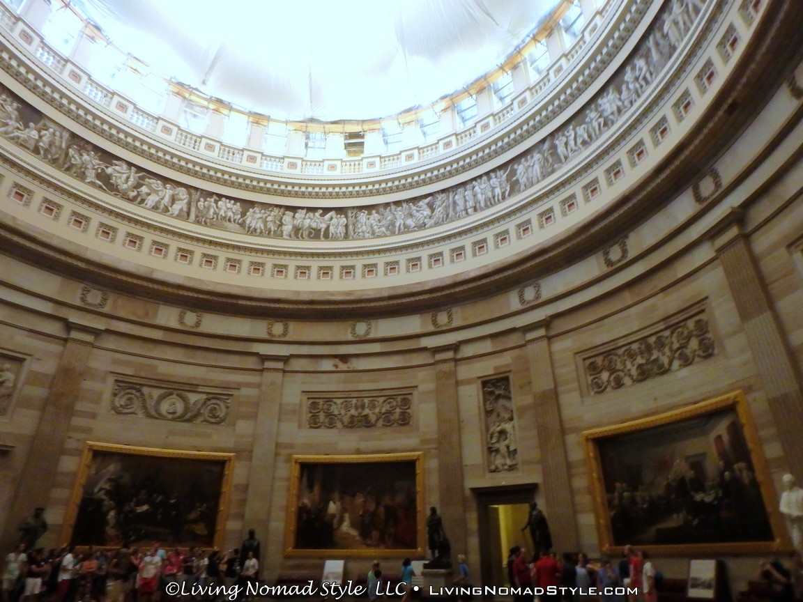 If your tour isn’t for another hour or so (like ours) upon arrival, you can always check out the museum. In this quiet, dimly lit room there is all manner of history concerning the Capitol Building and Washington D.C. in general. For instance, you will find out about the time the Capitol was nearly burned to the ground, and the rate of expansion during the various time periods in D.C., among other things. If you read all the signs and plaques before your tour (an impressive feat, I assure you), there’s a step-by-step presentation showing the process of how a bill becomes a law, though I find the video by School House Rock to be more comprehensive and easier to understand, personally.
