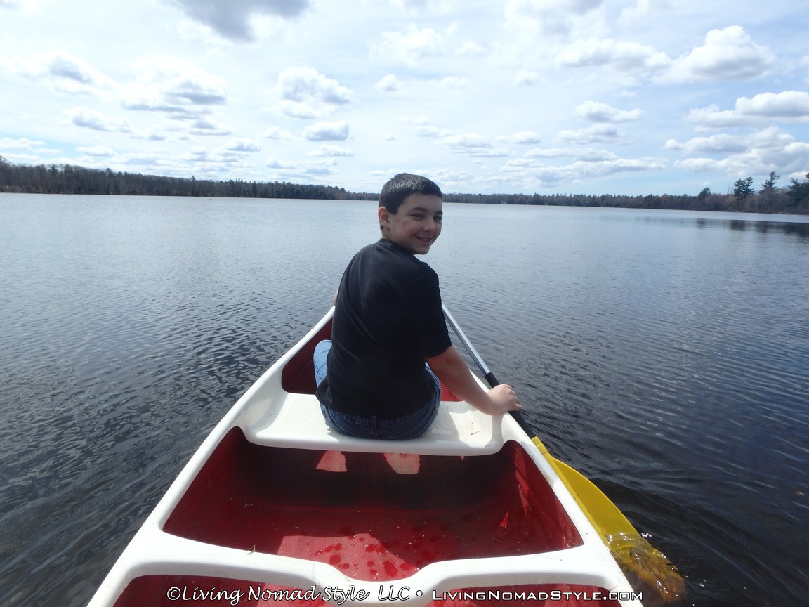 A few bonuses came with this house. One was that there was a Smith Machine combination exercise system in the garage. The three Nomad boys and I used it extensively while we were here. Also, there was a canoe in the back yard that we were given access to; which Trevor and I used to explore the whole lake. There were fishing poles in the garage that they were agreeable to let us use, but we never got around to it.